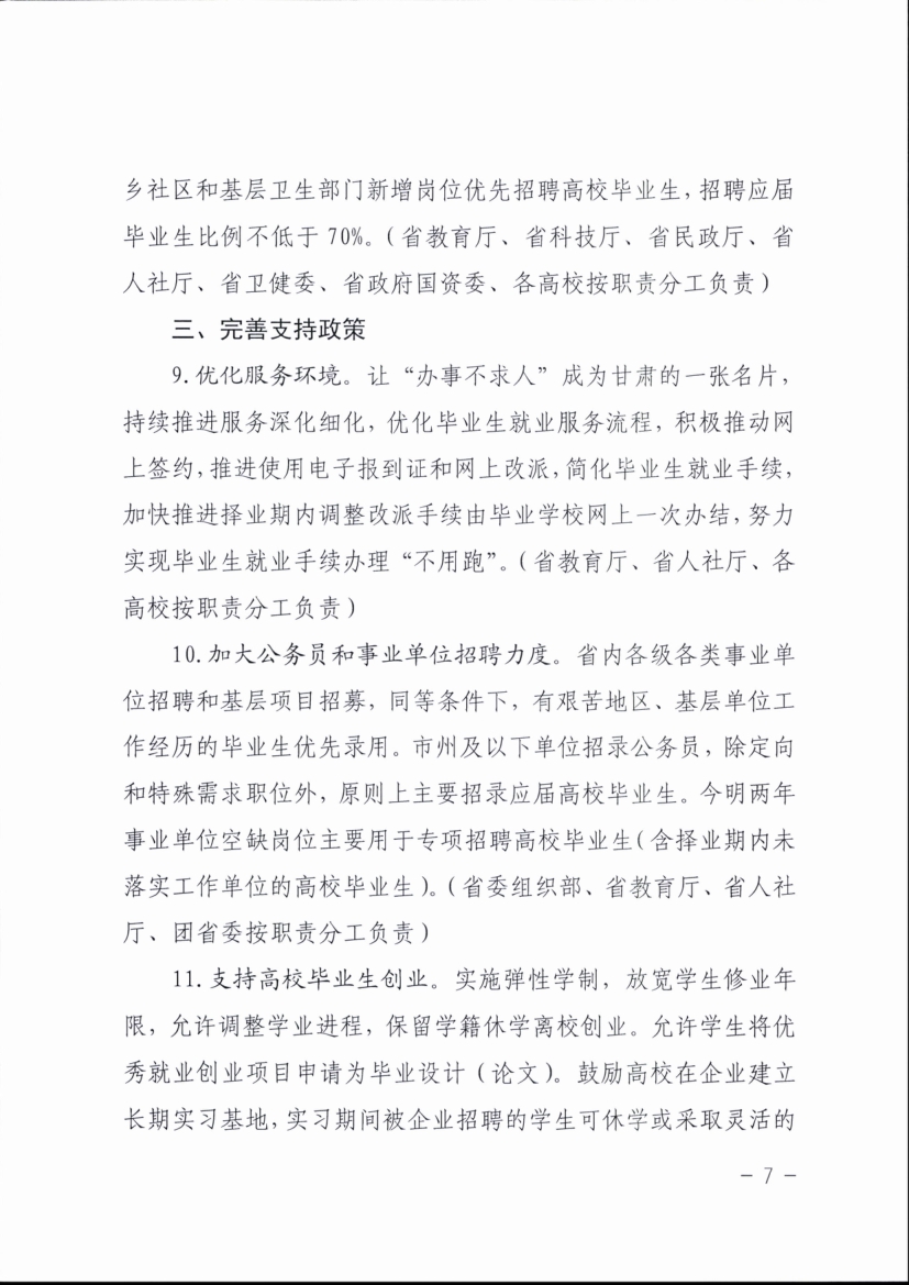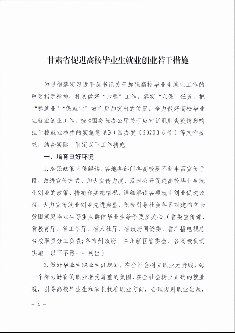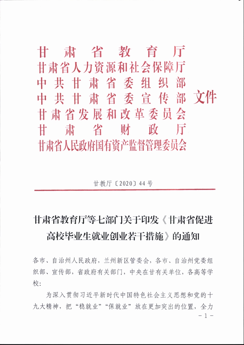 甘肅省教育廳等七部門關(guān)于印發(fā)《甘肅省促進高校畢業(yè)生就業(yè)創(chuàng)業(yè)若干措施》的通知