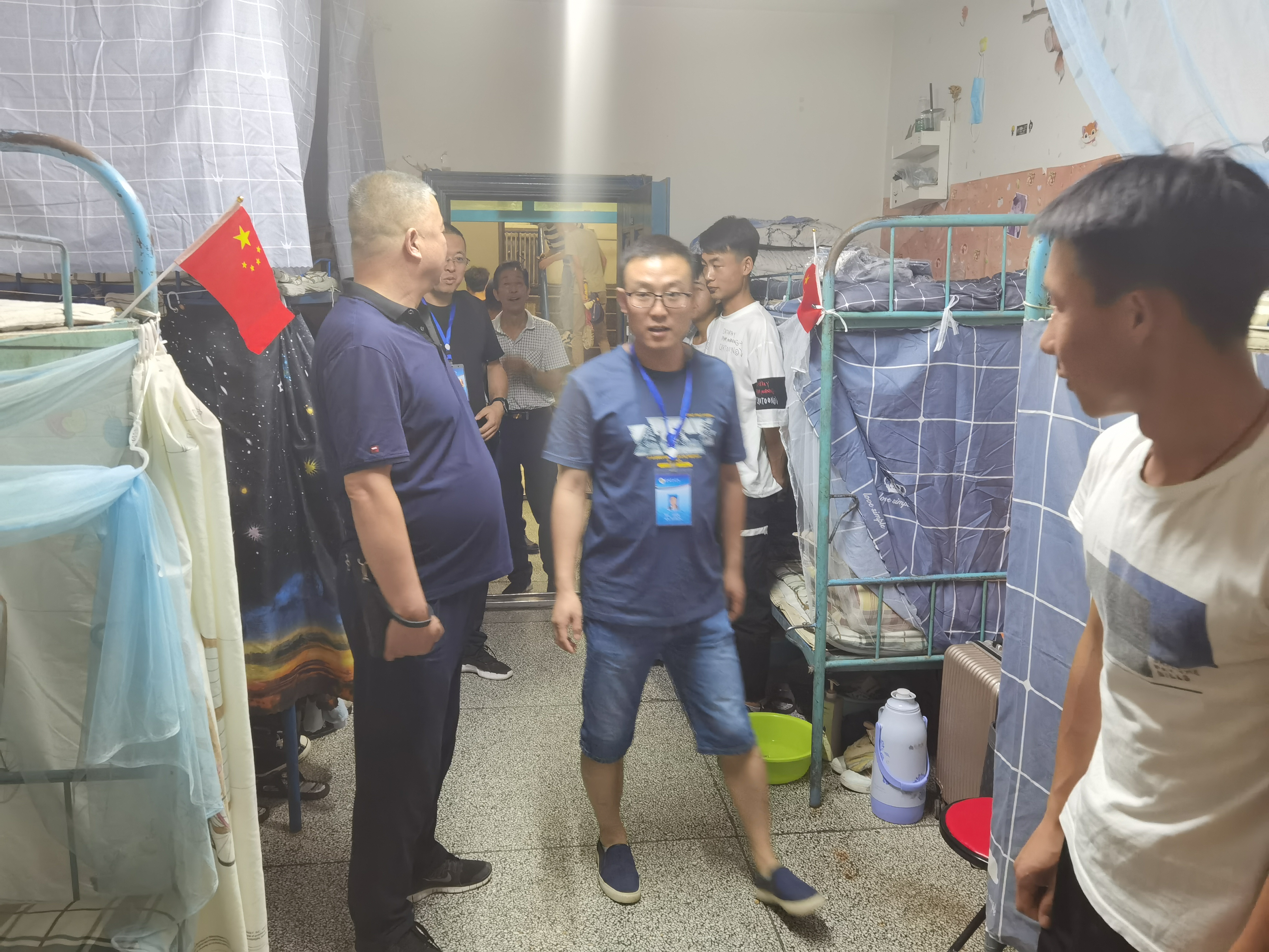 ? 6月26日晚,學院副院長王守云,保衛(wèi)處處長王政,學工處副處長高鵬堂,教師姚斌一行深入我系學生宿舍,實地視察和慰問我系返校學生生活狀態(tài)。