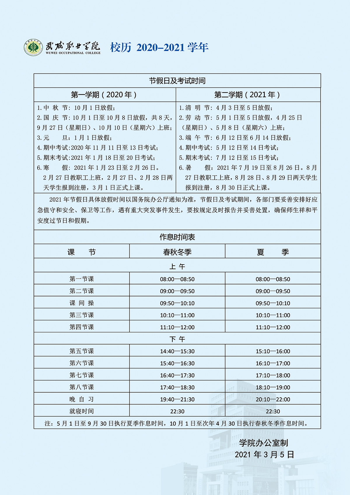 2020-2021學年校歷