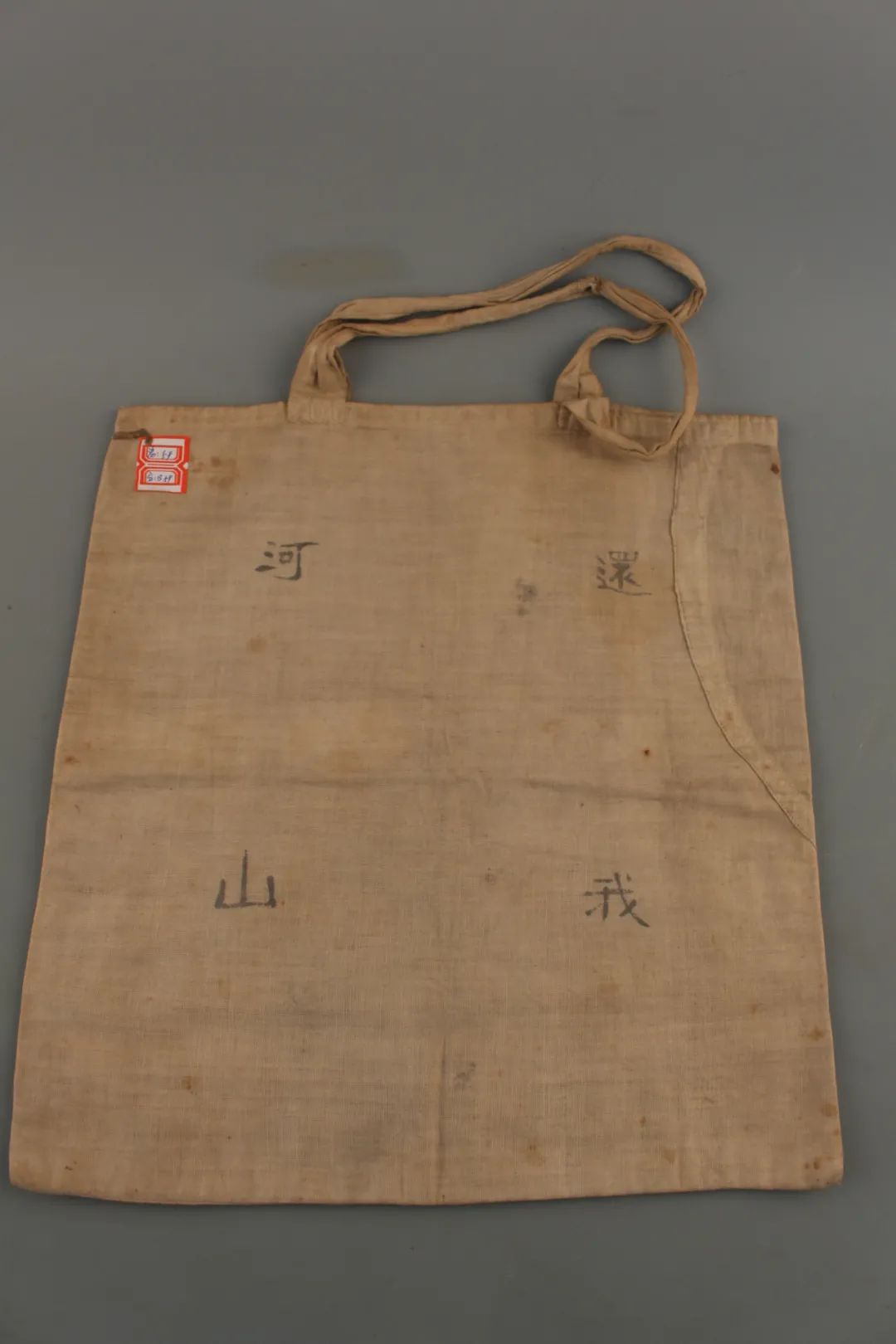 “還我河山”,車向忱夫婦用過的手提兜上,四個(gè)字依然清晰?!熬乓话恕笔伦兒?,東北淪陷,教育家車向忱多次往返關(guān)內(nèi)外,積極組織抗日救亡運(yùn)動,還創(chuàng)辦了許多平民學(xué)校。這個(gè)手提兜原為白色,歷經(jīng)歲月和戰(zhàn)火,現(xiàn)已陳舊發(fā)黃。布兜正面繡有黑色“收復(fù)東北失地,1938”字樣,背面寫有“還我河山”字樣。