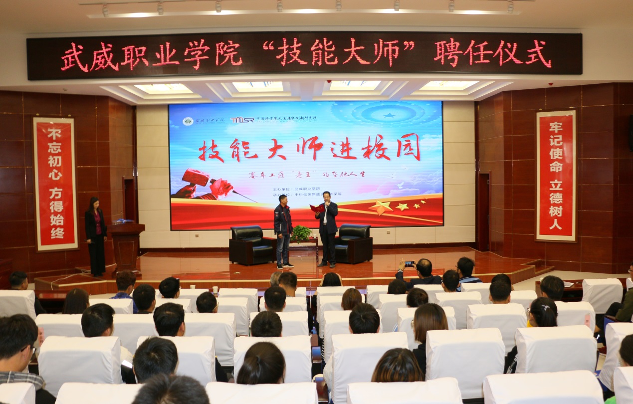 訪談結(jié)束后舉行了學(xué)院“技能大師”聘任儀式,黨委副書記翟存祥為王文朝頒發(fā)了“技能大師”聘書。