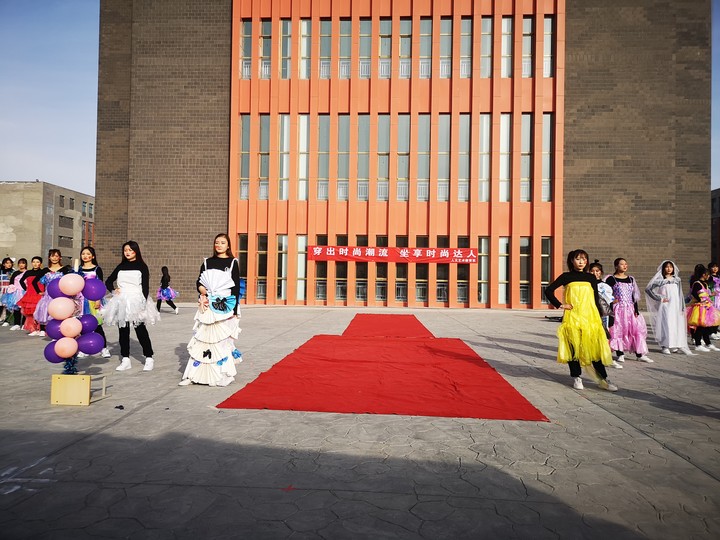 時(shí)裝秀由人文藝術(shù)教育系學(xué)前教育專業(yè)同學(xué)親手制作,再由同學(xué)們身著舊窗簾裁剪的長(zhǎng)尾裙、廢撲克牌制作的“國王”套裝、廣告紙變身的鎧甲、塑料袋制成的披風(fēng)等等,跟著音樂的節(jié)奏,走起了“貓步”。通過這項(xiàng)活動(dòng)使同學(xué)們要保護(hù)環(huán)境,節(jié)約糧食,倡導(dǎo)全體同學(xué)樹立環(huán)保意識(shí)和節(jié)約意識(shí),希望環(huán)保理念能夠扎根于同學(xué)們的心中。