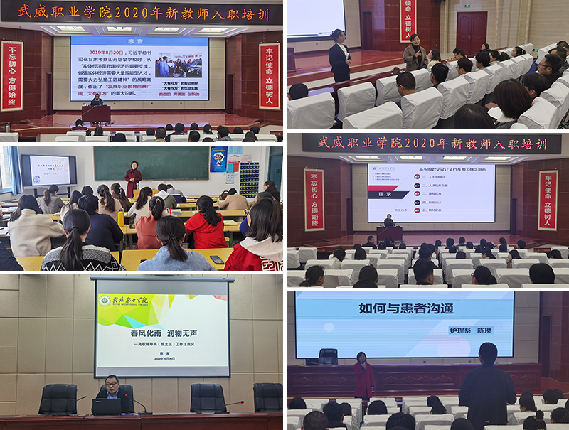 集中培訓(xùn)分為名師講堂、職業(yè)解碼、教學(xué)示范課和職業(yè)拓展四個(gè)模塊,分別邀請(qǐng)了學(xué)院黨委副書記、思政名師工作室主持人翟存祥、能源工程系負(fù)責(zé)人胡建宏、創(chuàng)新創(chuàng)業(yè)中心負(fù)責(zé)人顏魯薪、學(xué)工處教師付成榮、護(hù)理系教師趙穎和陳琳、現(xiàn)代農(nóng)業(yè)技術(shù)系教師蔡海作了精彩而又生動(dòng)的報(bào)告。報(bào)告以《育師德、樹師風(fēng)、鑄師魂,努力打造師德高尚的新時(shí)代教師隊(duì)伍——從教師職業(yè)素養(yǎng)說起》《高校教學(xué)活動(dòng)一般原理與實(shí)踐問題》《基本的教學(xué)設(shè)計(jì)文檔》《立足崗位勇?lián)?dāng) 扎根西涼育工匠——從青椒到骨干》《提高教學(xué)效率的有效方法》《如何與患者溝通》《春風(fēng)化雨潤物無聲——高職輔導(dǎo)員(班主任)工作之我見》為主題,使新教師對(duì)教師職業(yè)素養(yǎng)、師德師風(fēng)、教育教學(xué)改革、人才培養(yǎng)模式、創(chuàng)新創(chuàng)業(yè)、課堂教學(xué)及班主任工作有了全新的認(rèn)識(shí)。