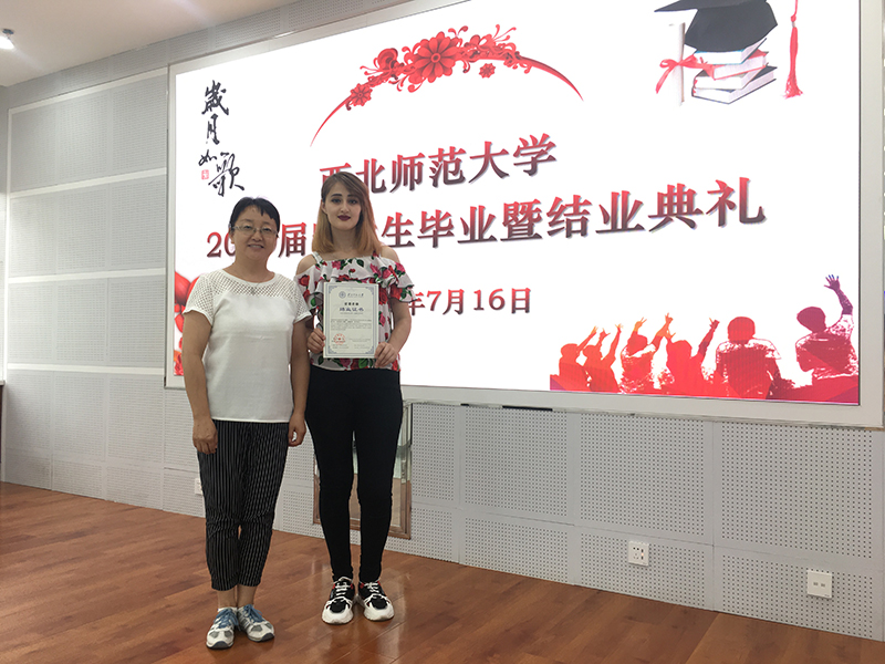 畢業(yè)典禮在留學生視頻播放中開始,視頻內(nèi)容真實,情真意切,如實記錄了留學生在華學習、生活的點點滴滴,展示了“一帶一路”合作倡議下教育對外開放的成果。西北師范大學國際文化交流學院書記李東海宣讀結(jié)業(yè)生名單,我院19級5名留學生赫然在列。西北師范大學國際合作與交流處處長王君朝向留學生祝詞,對留學生經(jīng)過努力學習、順利畢業(yè)表示衷心祝賀。留學生代表用流利漢語發(fā)言,既反映了漢語學習的效果,也表達了對漢語學習生活的留戀,對學校培育的感激,對中國政府和中國人民對外友好的真心感謝。留學生在激動喜悅的心情中領(lǐng)取了結(jié)業(yè)證書及紀念品。