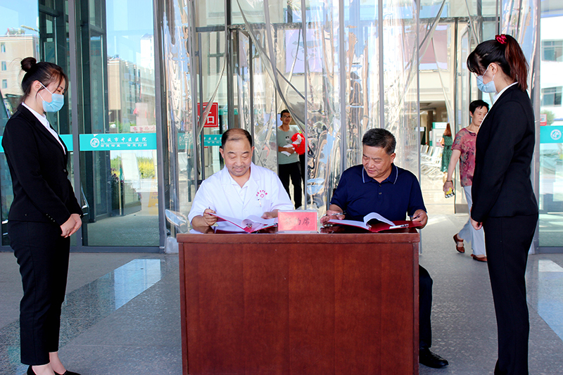 張?zhí)斓峦驹谥罗o中說:醫(yī)院能夠成為學(xué)院教師實踐基地,是武威職業(yè)學(xué)院對市中醫(yī)院各方面工作的信任和肯定,也是醫(yī)院提升綜合素質(zhì)的良好平臺,更是醫(yī)院加快發(fā)展的新起點。醫(yī)院要以此為契機(jī),進(jìn)一步強(qiáng)化“科教興院”意識,抓住機(jī)遇、乘勢而上,虛心學(xué)習(xí)、取長補(bǔ)短,爭取以一流的管理、一流的服務(wù)、一流的技術(shù)、一流的設(shè)備、一流的環(huán)境為人民群眾的健康做出更大的貢獻(xiàn)。