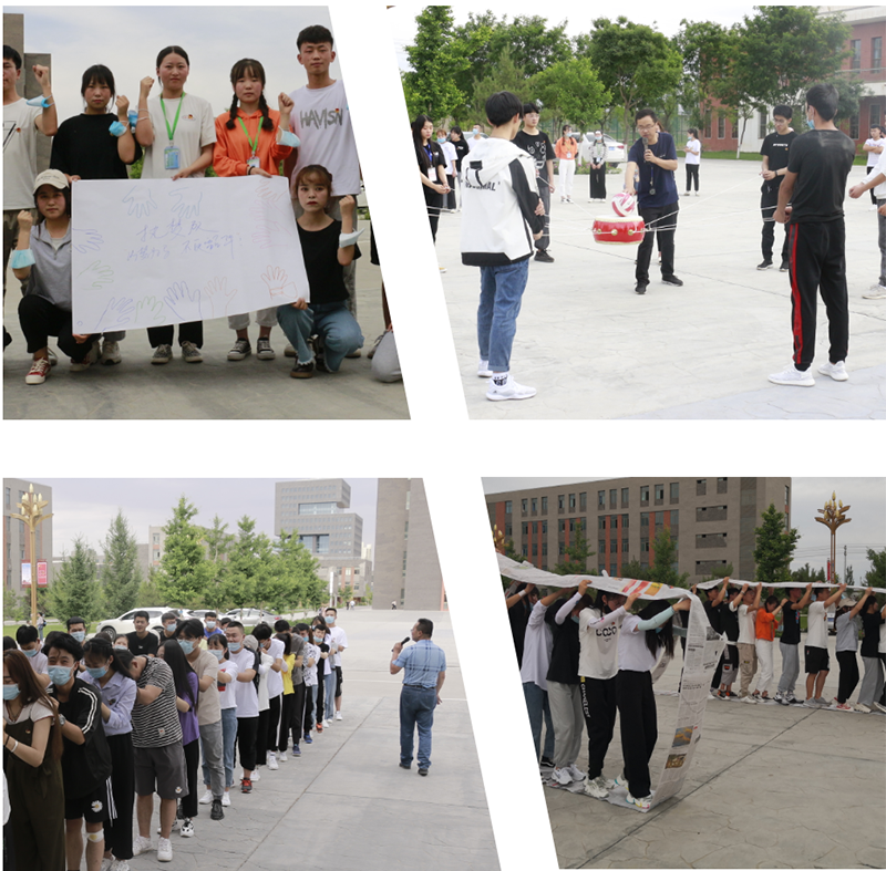 6月19日、6月20日下午在大學(xué)生活動中心前廣場開展“釋放壓力、放飛心靈”素質(zhì)拓展活動。活動包括破冰、團(tuán)隊建設(shè)、風(fēng)火輪大PK、同心協(xié)力創(chuàng)輝煌(鼓動人心)、分享五個環(huán)節(jié)。