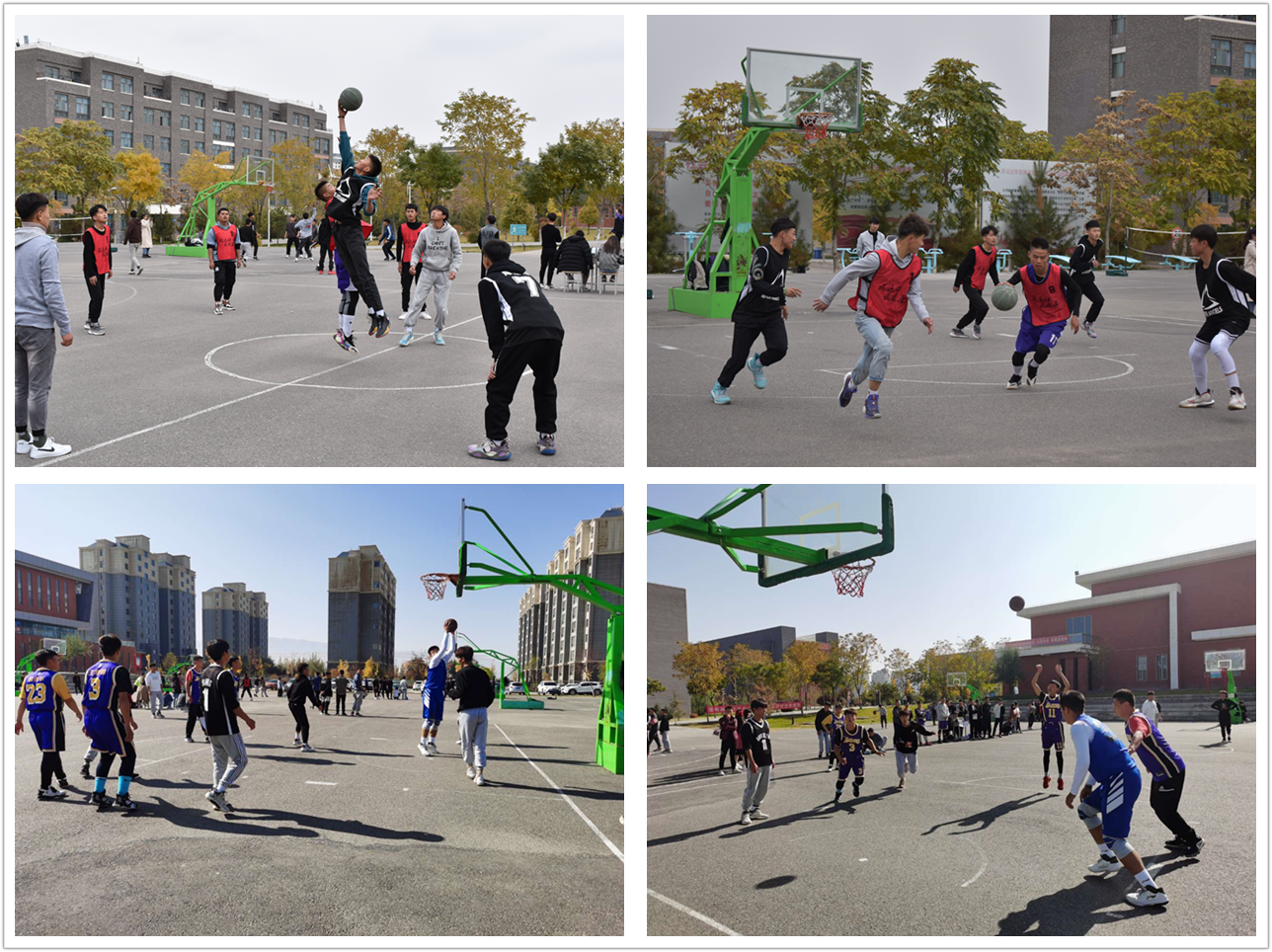 籃球比賽共有12支隊伍參加比賽,在賽場上運動員積極拼搏、全力以赴。場下的同學(xué)們努力為運動員吶喊助威,為運動員們注入了強大的精神動力。
