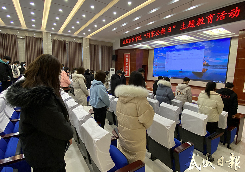當天各系組織開展了國家公祭日主題團日活動。通過學習南京大屠殺相關(guān)歷史知識、講解國家公祭日設(shè)立的重大意義、進行默哀儀式、共同宣讀《和平宣言》等形式表達對南京大屠殺遇難者的哀悼與哀思。12月14日《武威日報》刊發(fā)了我院開展國家公祭日主題教育活動新聞報道。