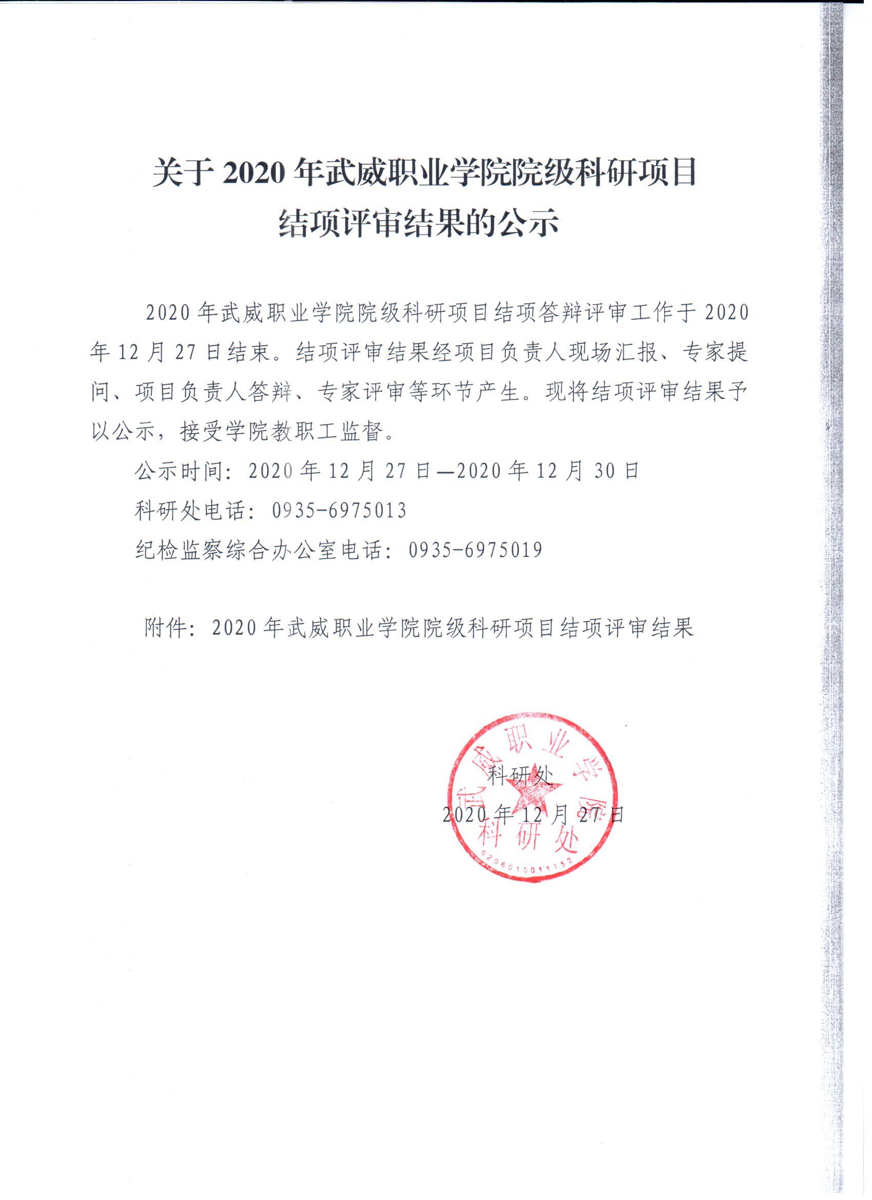 關(guān)于2020年武威職業(yè)學院院級科研項目結(jié)項評審結(jié)果公示
