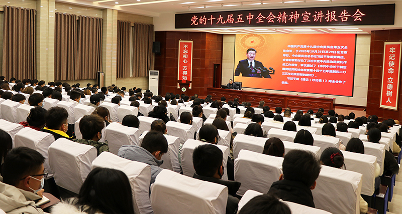 12月30日晚,黨委書記、院長趙明在菁英廳為黨員干部和師生作題為“認真學習貫徹黨的十九屆五中全會精神 為建設(shè)‘雙高’院校不懈努力奮斗”的宣講報告。進一步引領(lǐng)師生學習認知十九屆五中全會的重大意義,深刻把握主要內(nèi)涵,準確領(lǐng)會十九屆五中全會關(guān)于教育事業(yè)的重要論述,全面貫徹十九屆五中全會精神、推進學院教育事業(yè)再獲新業(yè)績。