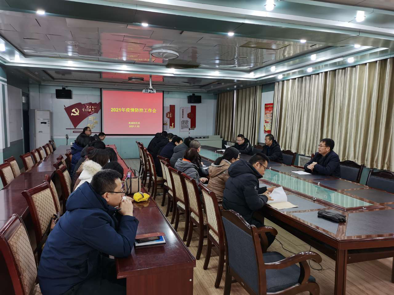 根據(jù)《武威職業(yè)學院2021年寒假春節(jié)開學前新冠肺炎疫情防控應(yīng)急處置預案》和《關(guān)于進一步加強寒假期間學生疫情防控工作的通知》通知要求,1月12日,機械制造系在博學樓黨員活動室召開疫情防控工作專題會議,傳達省市、學院疫情防控要求,部署寒假師生管理和疫情防控工作。