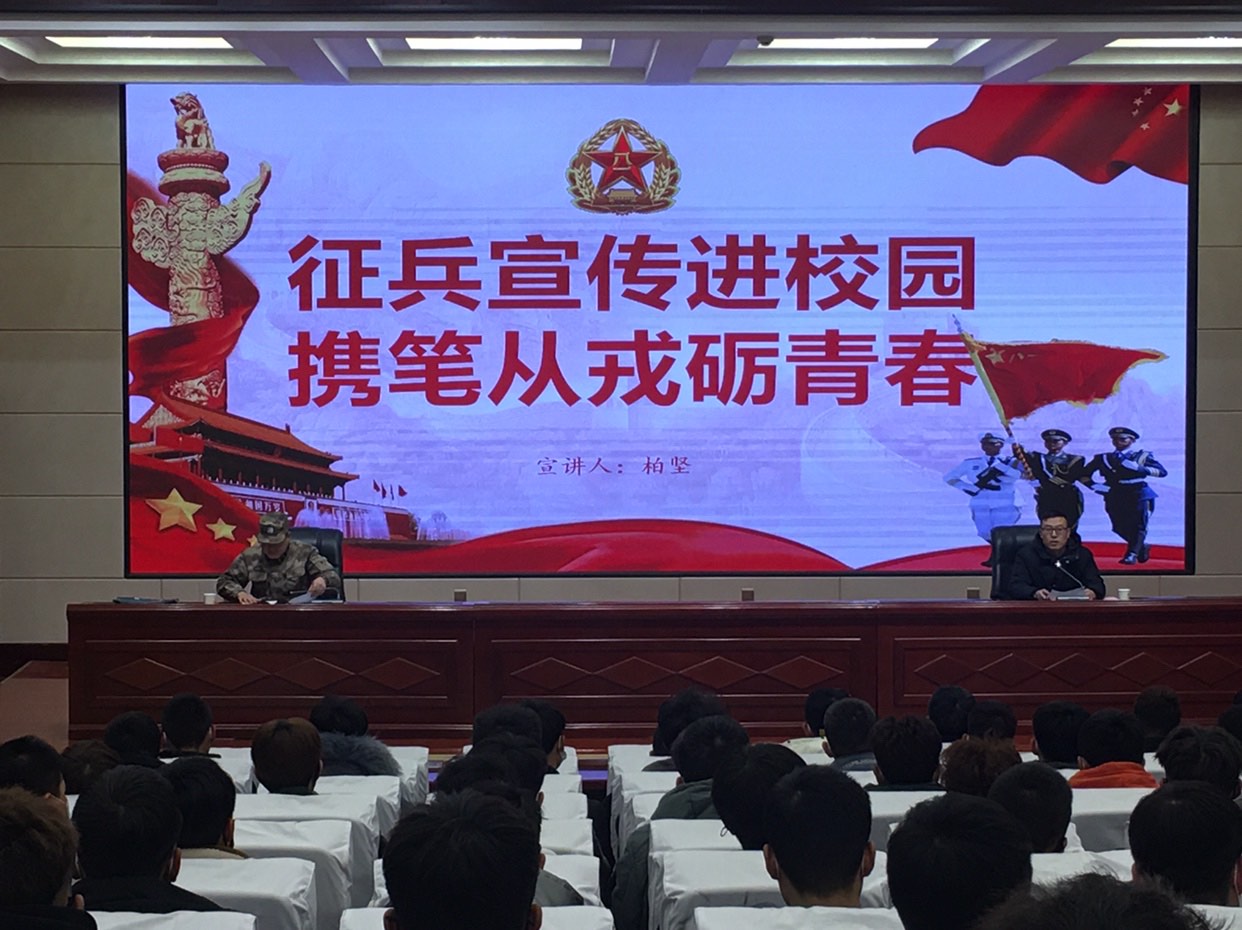 柏堅就征兵工作中的征兵對象、征集辦法、體檢標準、優(yōu)惠政策等做了詳細介紹,并結合自身經歷講述了真實的軍旅生活和當兵帶來的變化,引導大學生從增強體魄、鍛煉意志、加強組織紀律性和提高執(zhí)行力等方面全面認識應征入伍的重大意義,教育大家把個人理想抱負融入強軍夢、中國夢,投身祖國建設國防建設事業(yè),號召廣大青年學生積極響應國家政策,勵志參軍,報國建功。