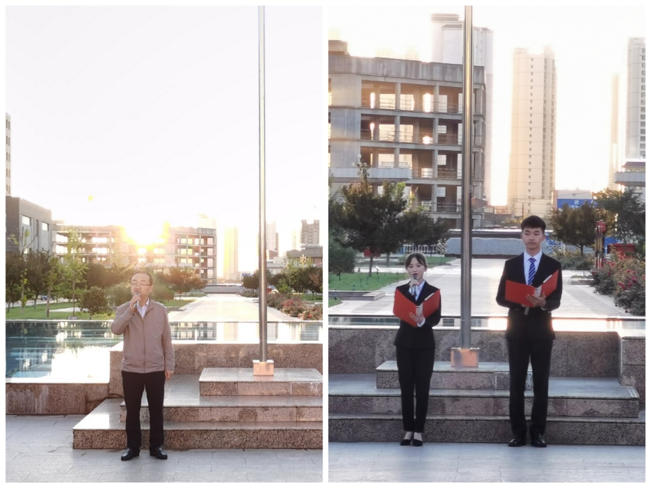 升旗儀式開始,全體肅立,在師生的注視中,國旗護衛(wèi)隊員,迎著朝陽,邁著鏗鏘有力的步伐來到國旗臺下,伴隨著莊嚴的《中華人民共和國國歌》,鮮艷的五星紅旗冉冉升起。升旗儀式結束后,2020級學生代表楊曉鵬、張鈺鈺進行了國旗下演講,他們呼吁同學們在求學路上,不斷探索、樂學善思、德技并修、求知上進、勤奮好學,做一名洋溢青春活力、釋放青春激情、追逐青春夢想、健康向上的新時代大學生,發(fā)出“請黨放心、強國有我”的深情告白。