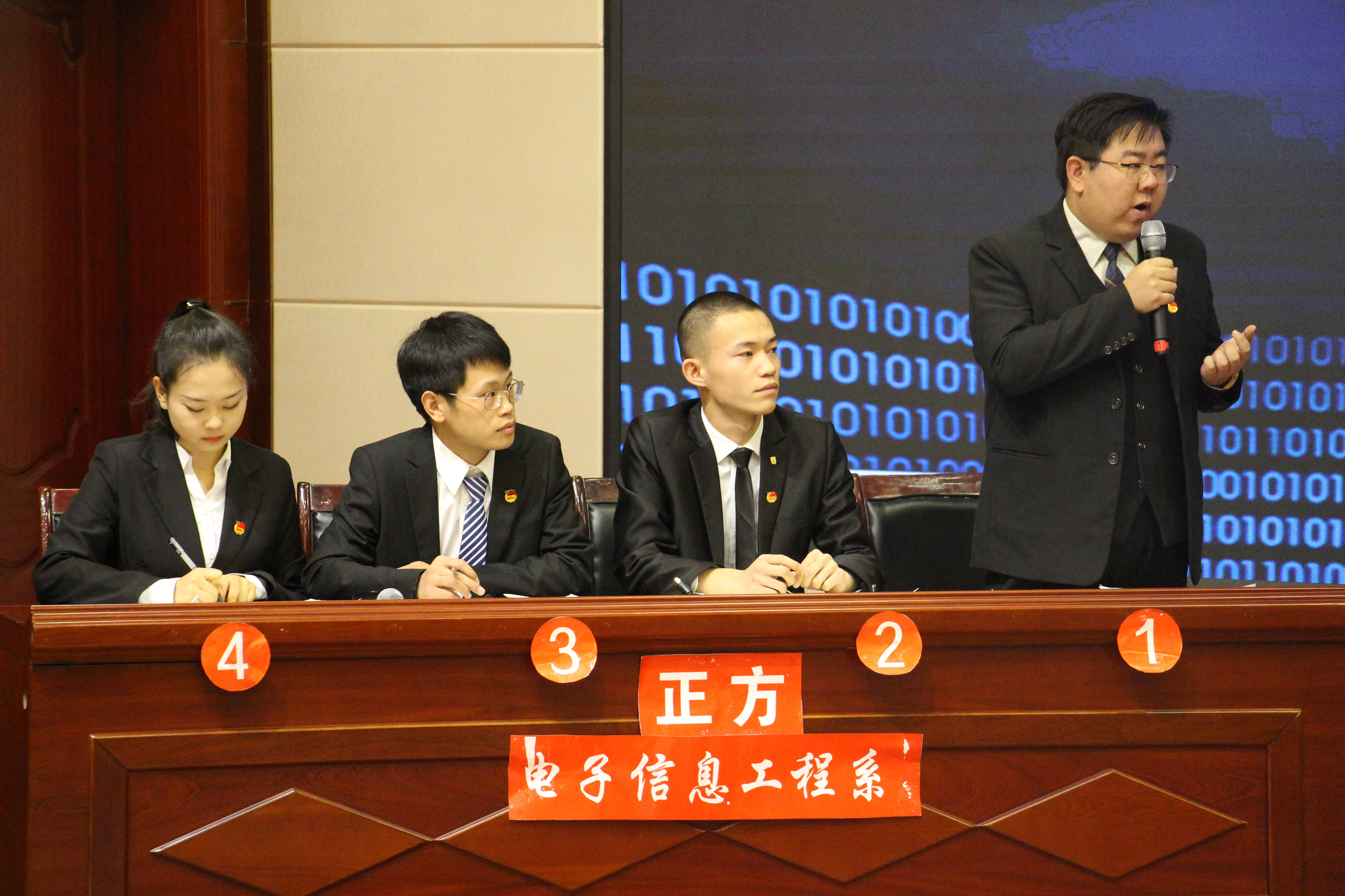 經(jīng)過(guò)11場(chǎng)次的比賽,電子信息工程系代表隊(duì)和藥學(xué)系代表隊(duì)進(jìn)入最后決賽。決賽現(xiàn)場(chǎng),正反雙方針對(duì)高素質(zhì)技術(shù)技能人才以“仁”還是以“智”為先拉開(kāi)激烈交戰(zhàn)。雙方選手在立論、駁立論、攻辯等環(huán)節(jié)中思路清晰,引經(jīng)據(jù)典,高潮迭起。自由辯論環(huán)節(jié),雙方唇槍舌戰(zhàn),針?shù)h相對(duì),步步為營(yíng),愈辯愈烈,精彩紛呈,觀眾也積極互動(dòng),現(xiàn)場(chǎng)氣氛十分活躍。