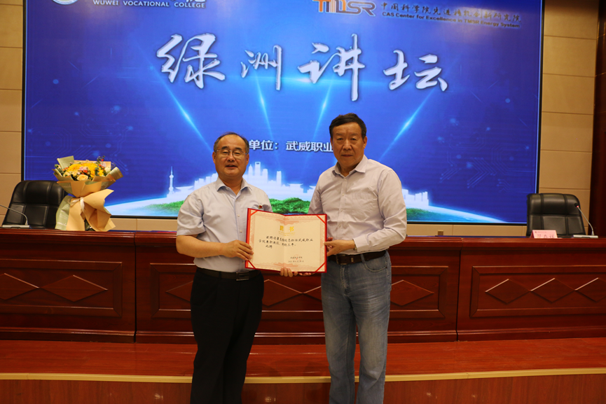 活動(dòng)第二階段,由中科低碳新能源技術(shù)學(xué)院院長(zhǎng)楊存忠為梁志強(qiáng)頒發(fā)了聘請(qǐng)其擔(dān)任武威職業(yè)學(xué)院中科低碳新能源技術(shù)學(xué)院專(zhuān)業(yè)建設(shè)指導(dǎo)委員會(huì)委員和武威職業(yè)學(xué)院兼職教授。梁主任還與在場(chǎng)師生進(jìn)行了愉快的溝通互動(dòng)環(huán)節(jié),從未來(lái)就業(yè)工作和專(zhuān)業(yè)建設(shè)方面為師生答疑解惑。