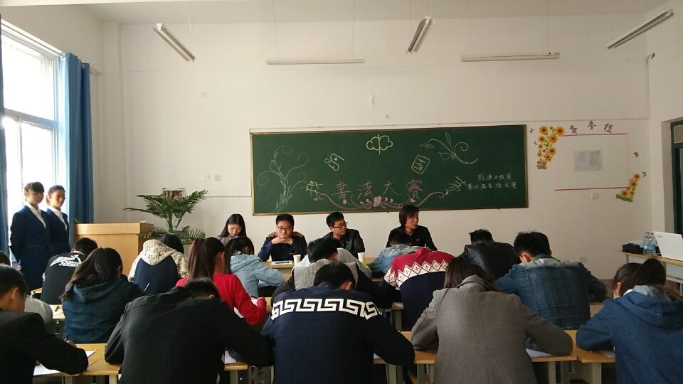 能源工程系第四屆書法大賽于2015年10月20日下午5點(diǎn)在明德樓104教室隆重舉行。本次書法大賽經(jīng)過層層海選,最終有18位同學(xué)進(jìn)入決賽。這次書法大賽邀請了侯舵、付江鵬兩位老師。