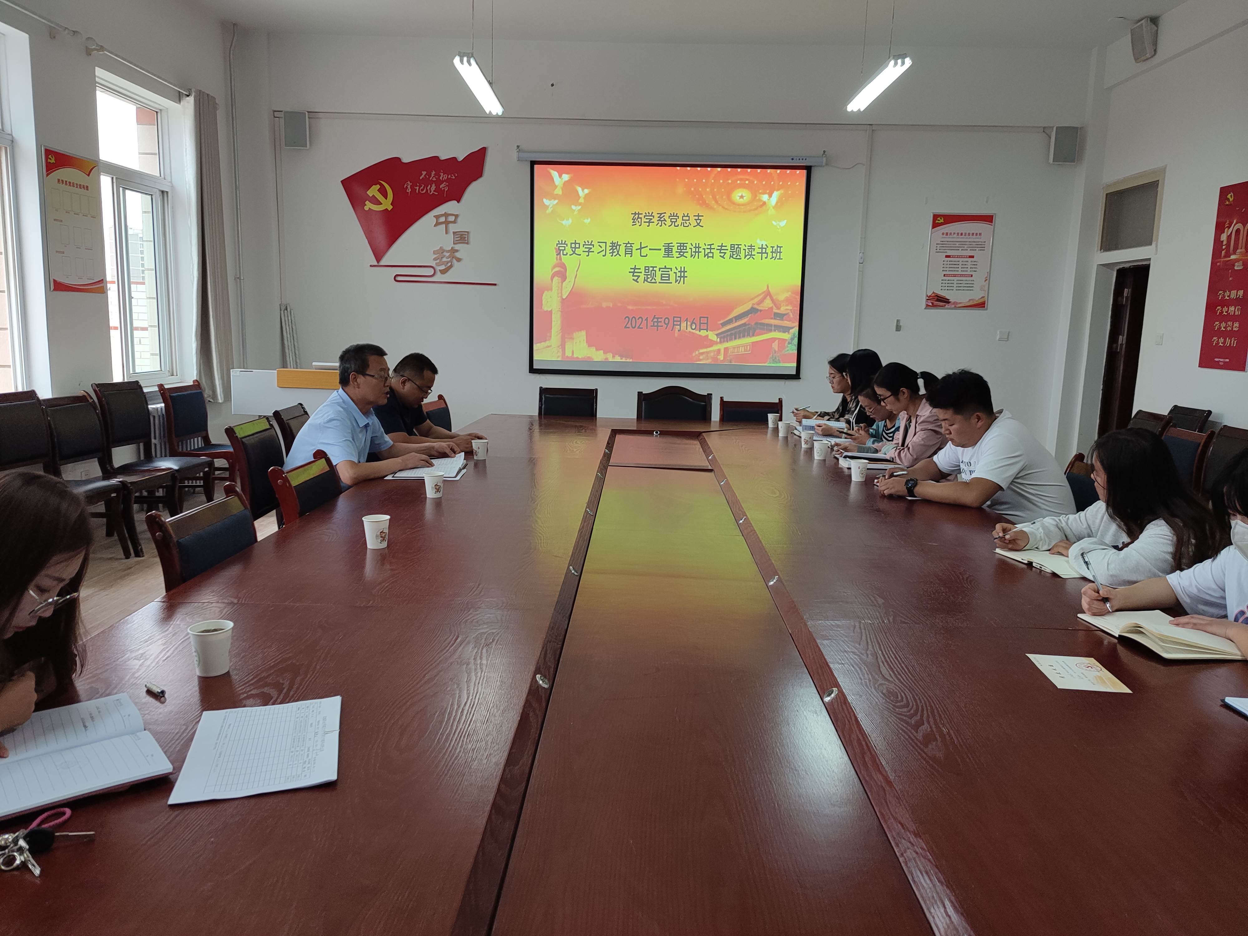 9月14日至9月17日,藥學(xué)系黨總支組織召開學(xué)習(xí)習(xí)近平總書記七一講話精神專題讀書班,系黨總支全體黨員和入黨積極分子學(xué)習(xí)參加了讀書班學(xué)習(xí),讀書班由系黨總支書記魏潤明主持。這次“七一”講話專題讀書班,安排部署到位,活動開展扎實,交流研討結(jié)合實際,達(dá)到了預(yù)期效果。