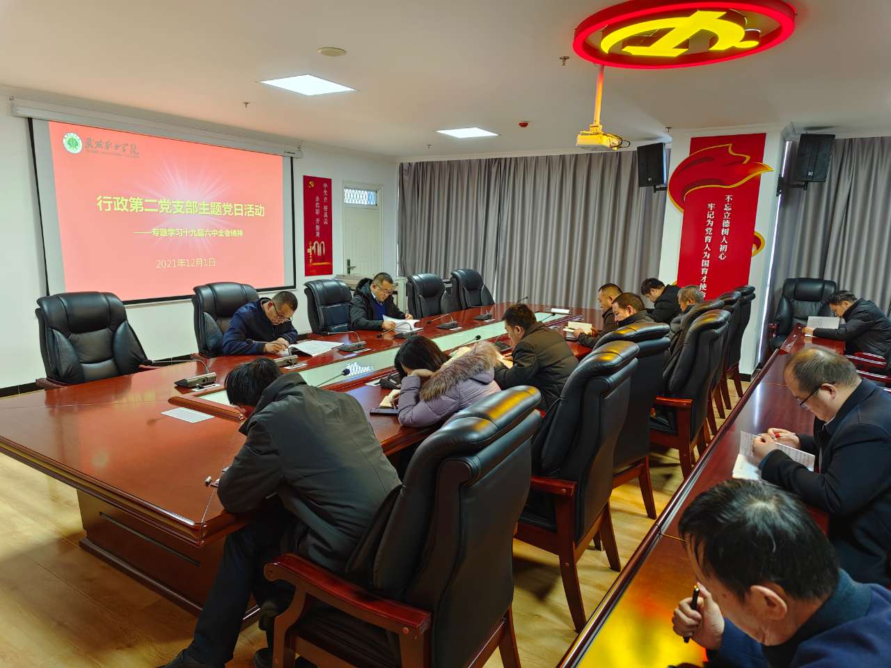 2021年12月1日上午,行政第二黨支部舉行主題黨日活動,專題學習貫徹黨的十九屆六中全會精神。
