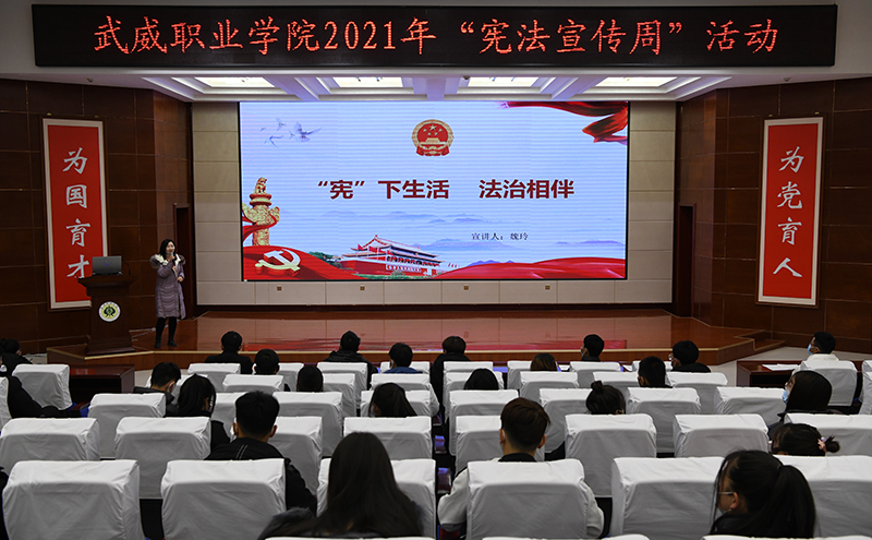 今年12月4日,是我國第八個國家憲法日。學生發(fā)展中心菁英廳內,馬克思主義學院法學專業(yè)教師魏玲進行了主題為“憲下生活法治相伴”的講座,學生代表110余人聆聽講座。