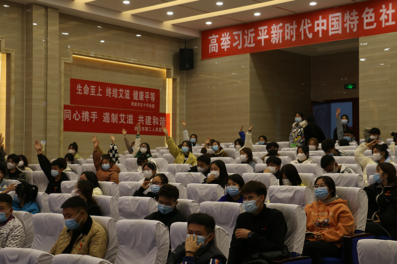 市疾控中心艾防科段曉虹主任和市第二人民醫(yī)院俞文麗主任分別就艾滋病預(yù)防與控制、hpv檢測與臨床應(yīng)對進行了詳細的普及講授,內(nèi)容豐富、講解生動、意義深刻,使學(xué)生充分認識到艾滋病的嚴重危害,切實掌握艾滋病預(yù)防知識,消除對艾滋病的恐懼心理,提高自身保護意識和防范能力??破罩v座結(jié)束后,全場學(xué)生踴躍加入了有獎知識競答,現(xiàn)場氣氛熱烈,學(xué)生熱情高漲,很好的調(diào)動了學(xué)生主動掌握防艾知識的積極性。