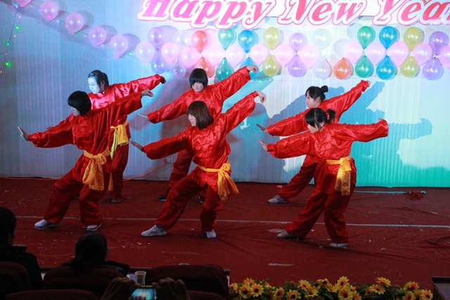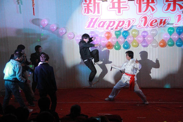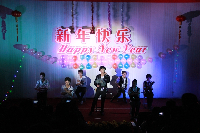 我系趙磊老師的薩克斯獨奏節(jié)奏明朗,富有磁力,優(yōu)美的旋律深深地吸引了全體觀眾。12級光熱班的張新輝,張一凡等同學反串《甄嬛傳》令現(xiàn)場的觀眾捧腹大笑。一首《祝福》的朗誦牽掛了所有觀眾,武術《中國功夫》令得全場驚呼,舞蹈《江南style》的精彩演出吸引了所有人的眼球。最后晚會在《同一首歌》的大合唱中緩緩落幕。
