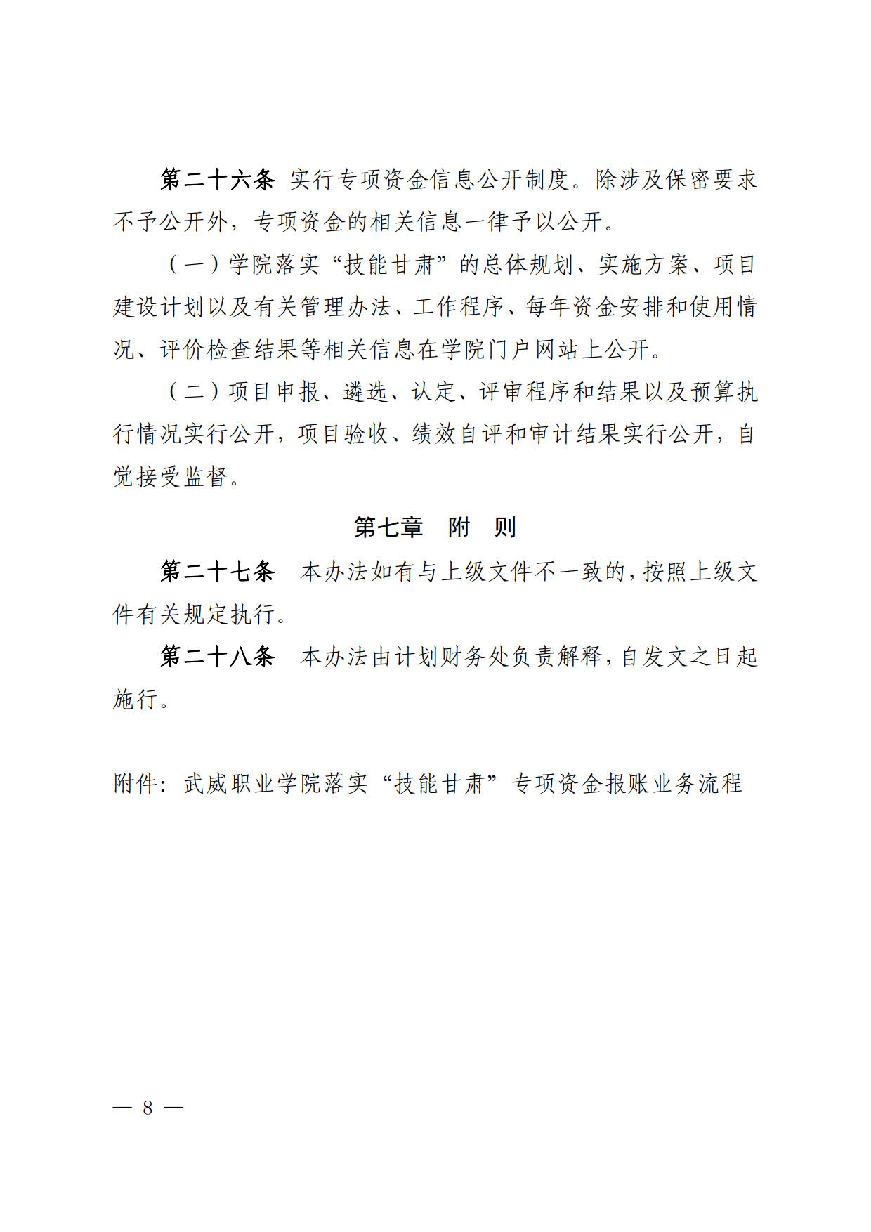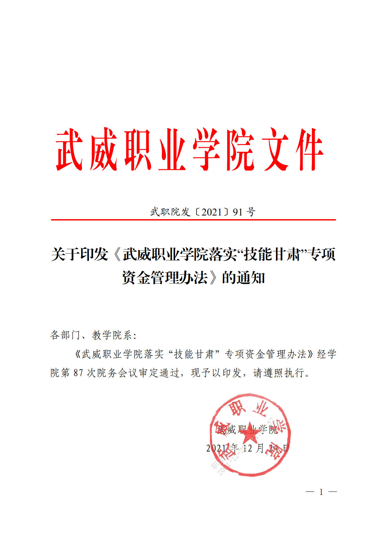 關(guān)于印發(fā)《武威職業(yè)學(xué)院落實(shí)“技能甘肅”專項(xiàng)資金管理辦法》的通知