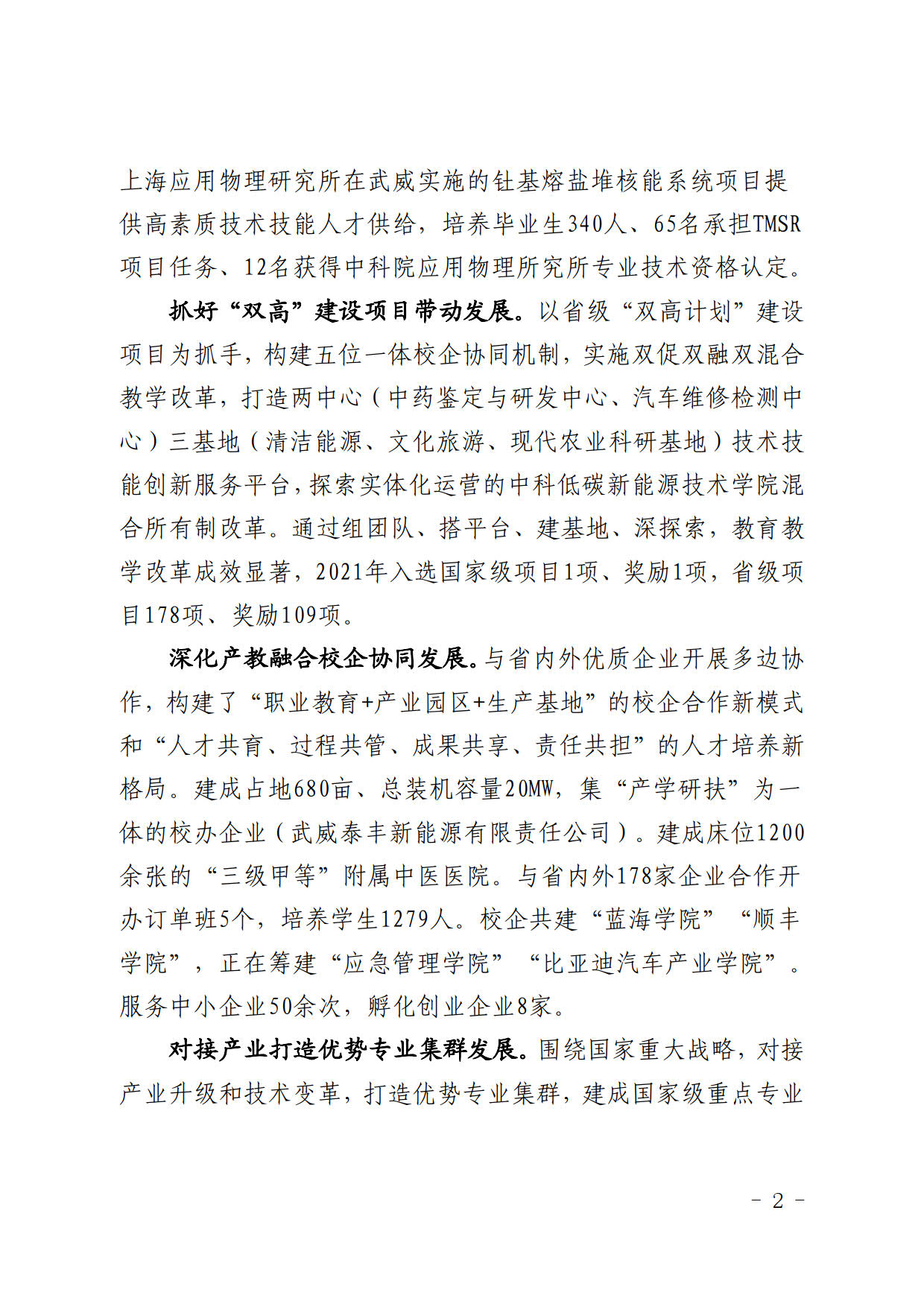 技能甘肅工作情況第28期:武威職業(yè)學院抓機遇強動能努力實現(xiàn)高質量發(fā)展