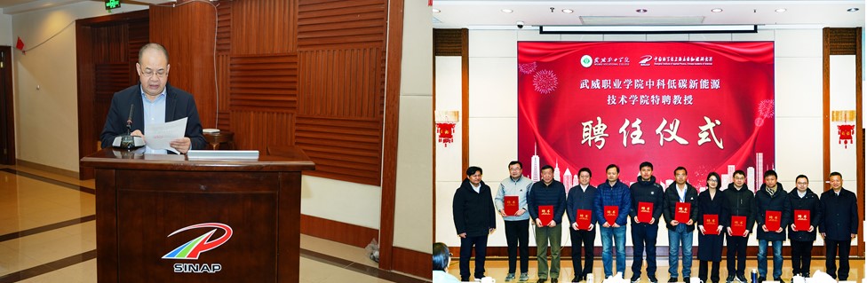 聘任儀式上,學(xué)院黨委副書(shū)記翟存祥宣讀了《武威職業(yè)學(xué)院 中國(guó)科學(xué)院上海應(yīng)用物理研究所關(guān)于續(xù)聘楊存忠等17名同志擔(dān)任中科低碳新能源技術(shù)學(xué)院特聘教授的通知》。隨后,上海應(yīng)用物理研究所所長(zhǎng)戴志敏,學(xué)院黨委書(shū)記、院長(zhǎng)趙明向17名特聘教授頒發(fā)了聘書(shū)。
