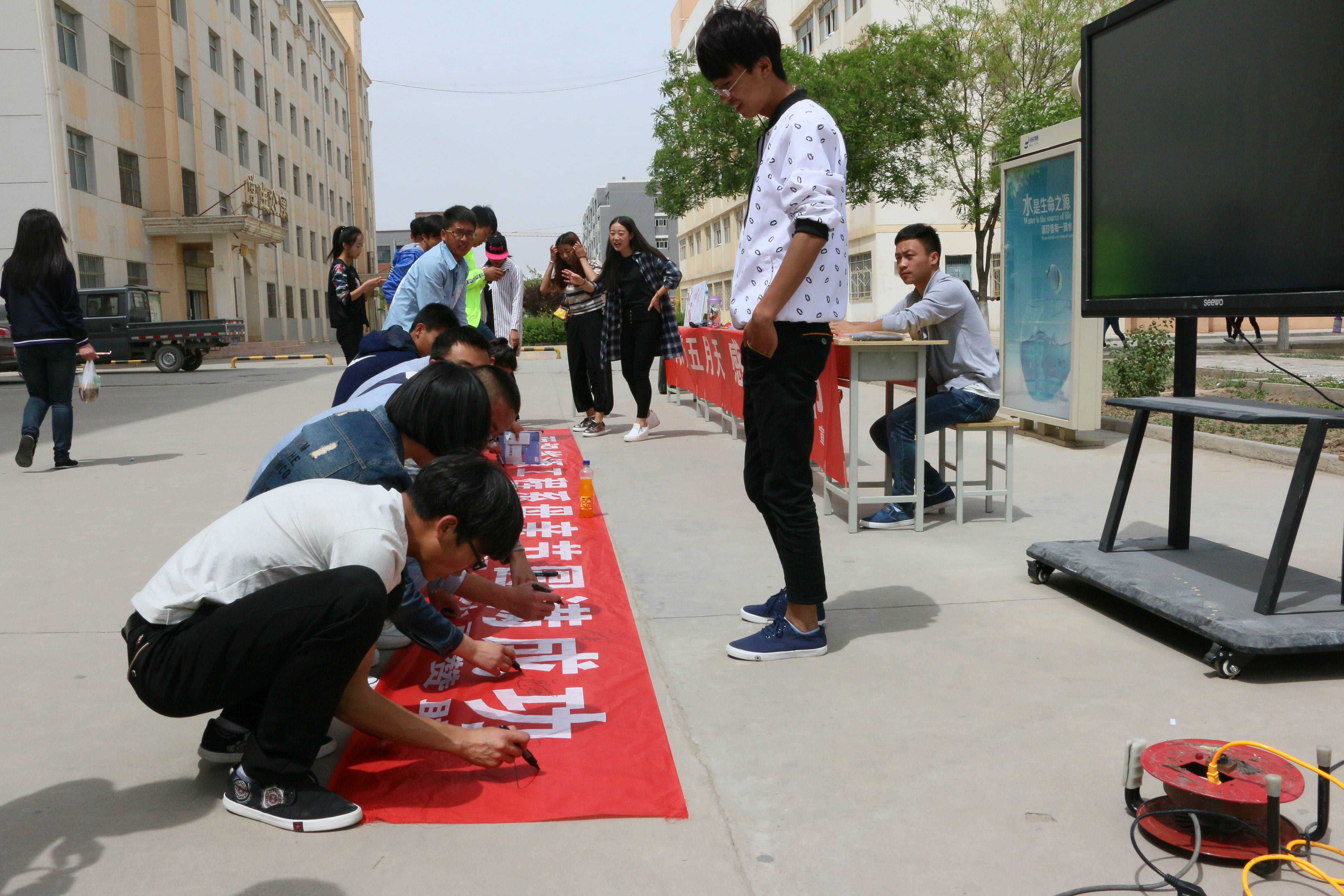 今天早晨十一點左右,能源系全體學生會成員以為這次的活動準備好了一切,有母親節(jié)的海報、母親節(jié)許愿瓶、對媽媽想說的話的展板、以及自己對媽媽祝福的簽名
