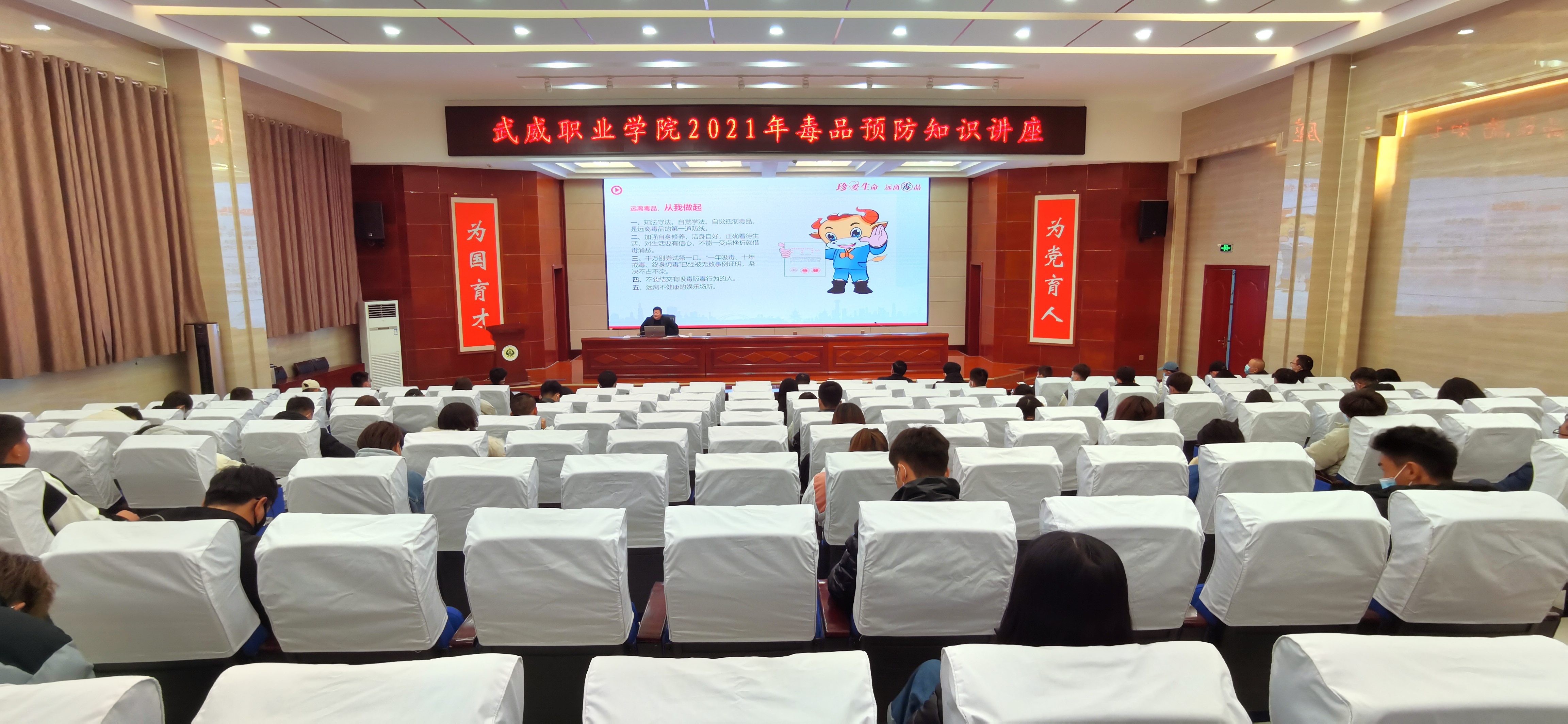 12月23日下午,學院邀請市禁毒委副主任、市政府副秘書長魯學才在菁英廳作了題為“健康人生,綠色無毒”毒品預防知識講座,學院副院長張開禮、武威市公安局禁毒支隊政委杜興林與師生一起聆聽了講座。