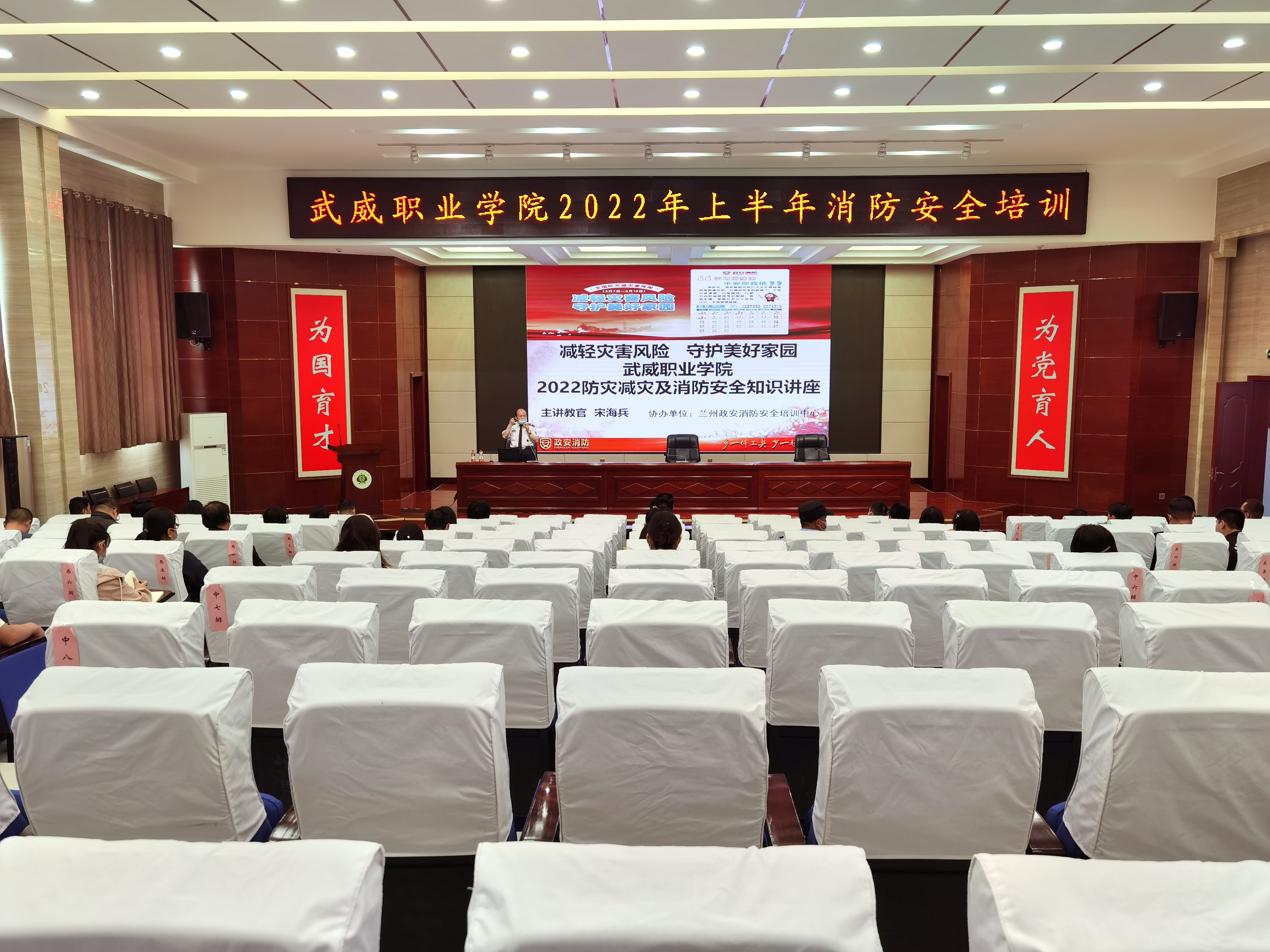 5月18日下午,學(xué)校在大學(xué)生發(fā)展中心菁英廳舉辦了2022年上半年消防安全知識(shí)培訓(xùn)。蘭州政安消防教官宋海斌應(yīng)邀作了“減輕災(zāi)害風(fēng)險(xiǎn),守護(hù)美好家園”專題講座。各部門、二級(jí)學(xué)院安全信息員、實(shí)驗(yàn)實(shí)訓(xùn)室管理員、新進(jìn)教師和消控室、學(xué)生食堂等重點(diǎn)管理崗位人員參加了培訓(xùn)。