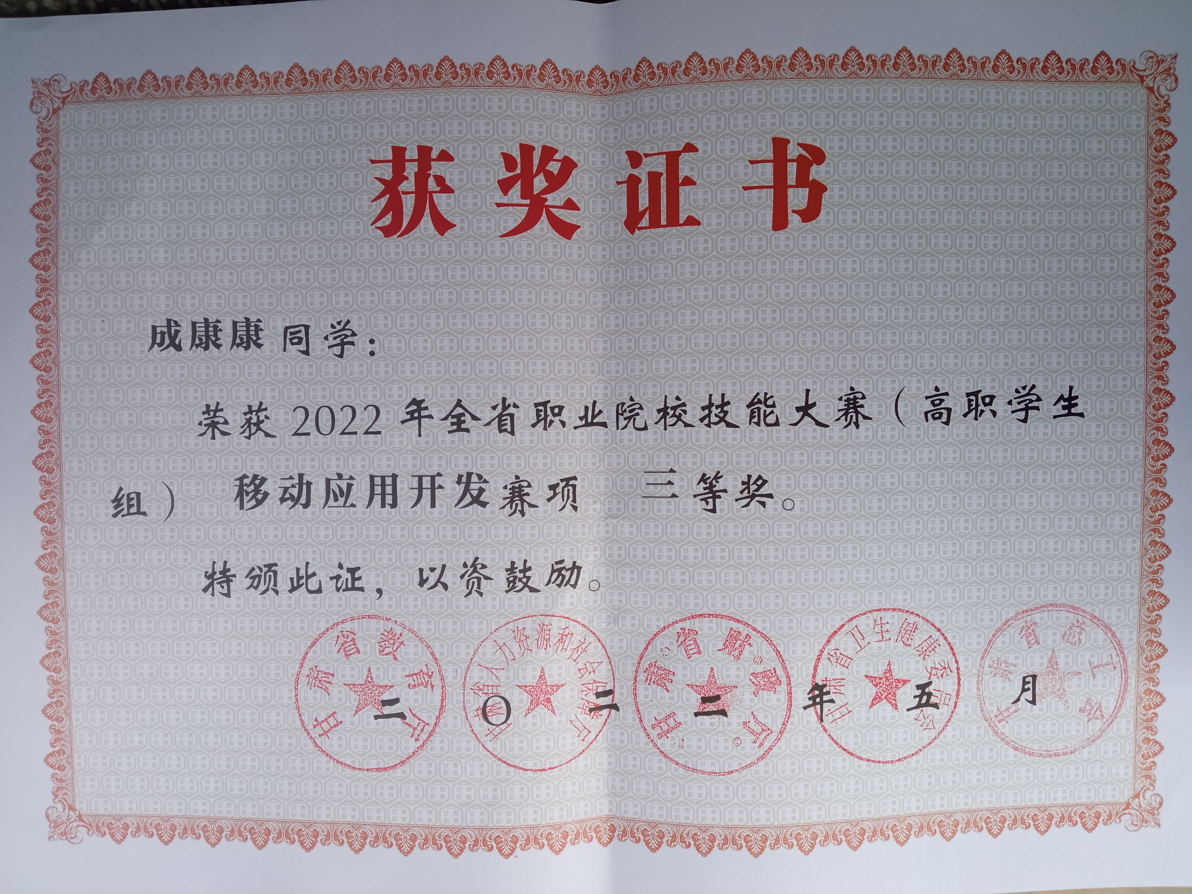 ?4月26日,2022年甘肅省職業(yè)院校技能大賽移動應用開發(fā)賽項在武威職業(yè)學院舉辦,信息技術(shù)學院在該賽項中獲學生組一等獎、三等獎各1項。