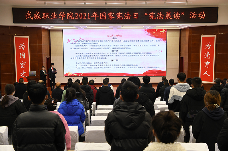 “本憲法以法律的形式確認了中國各族人民奮斗的成果,規(guī)定了國家的根本制度和根本任務(wù),是國家的根本大法,具有最高的法律效力……” 在“12·4”國家第八個憲法日當天,學院舉辦了“憲法晨讀”活動。伴隨著朗朗的誦讀聲,在場師生莊嚴而肅穆地感受著憲法作為國家根本大法的神圣不可侵犯性。