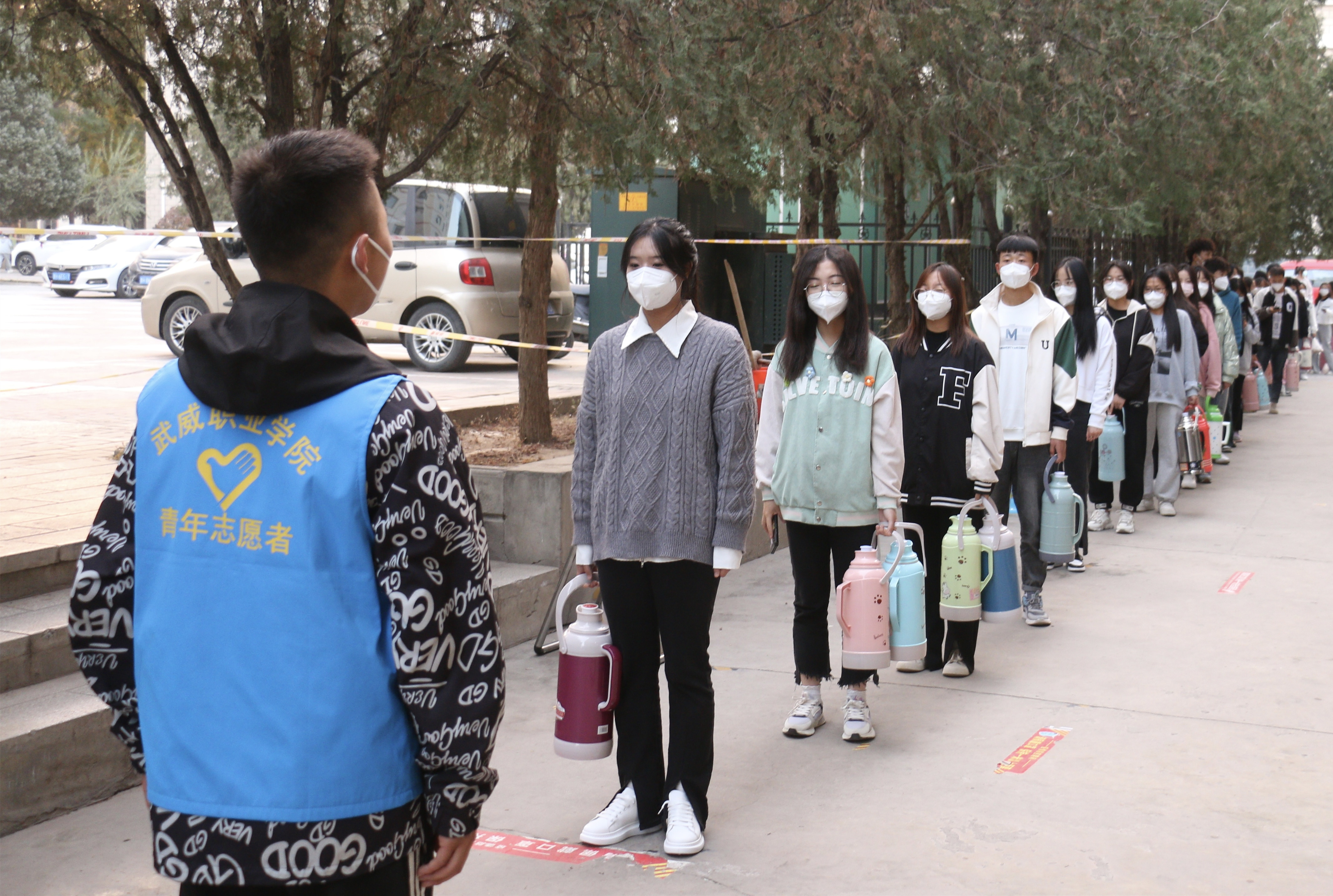 “您好,請(qǐng)測(cè)量體溫、掃場(chǎng)所碼?!薄罢?qǐng)佩戴好口罩,有序排隊(duì)……”校學(xué)生會(huì)的陶玲在學(xué)校食堂門口值班時(shí)不停地提醒著進(jìn)出打飯的同學(xué)們,這也是她參加校園疫情防控以來每天講得最多的話。自10月13日涼州區(qū)實(shí)施臨時(shí)管控以來,學(xué)校各學(xué)生組織聞令而動(dòng),身穿“藍(lán)馬甲”積極投身校園疫情防控一線,用奉獻(xiàn)溫暖了這個(gè)秋天。