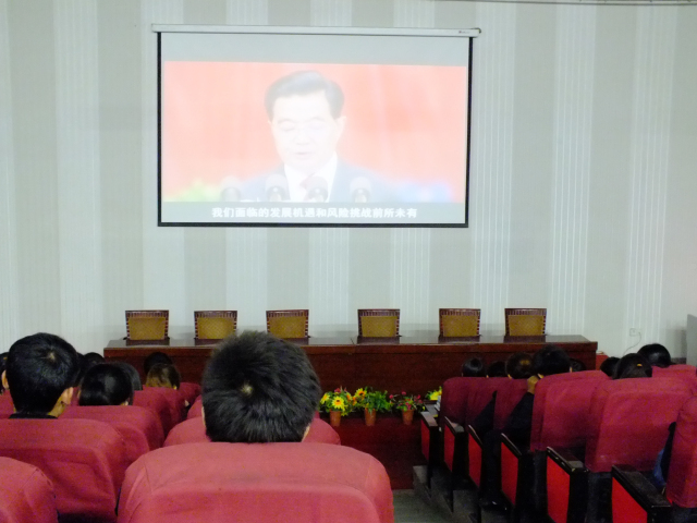 為更加深入地認知和理解十八大,展望祖國的美好未來,同時也讓大學生能夠樹立正確的人生目標,明確自己肩負的責任。根據(jù)院團委的安排,2013年4月19日晚上8:30藥學系組織全體師生在東階梯教室觀看了《黨的十八大精神學習專題片•大學篇》。