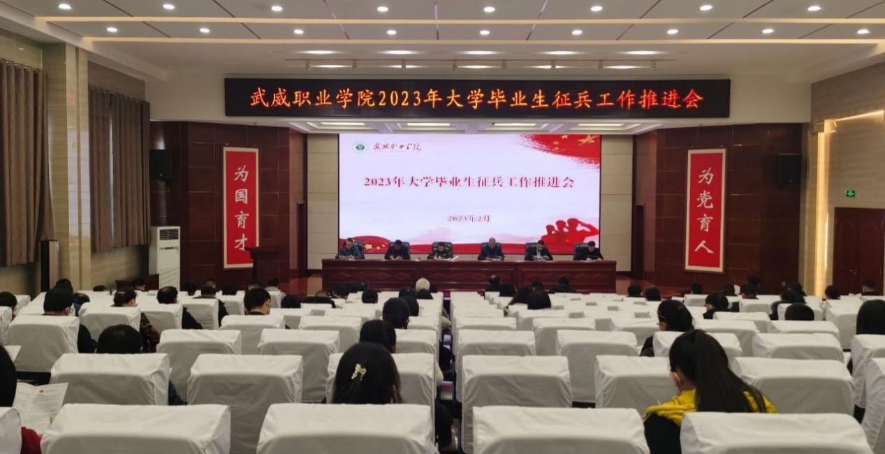 學(xué)生工作處組織學(xué)習(xí)了國(guó)家、甘肅省有關(guān)征兵政策和《武威職業(yè)學(xué)院2023年大學(xué)生應(yīng)征入伍工作方案》,通報(bào)了學(xué)校2023年上半年畢業(yè)生征兵報(bào)名情況,進(jìn)一步明確了各二級(jí)學(xué)院2023年大學(xué)畢業(yè)生征兵任務(wù),并就做好大學(xué)畢業(yè)生征兵工作提出了具體要求。
