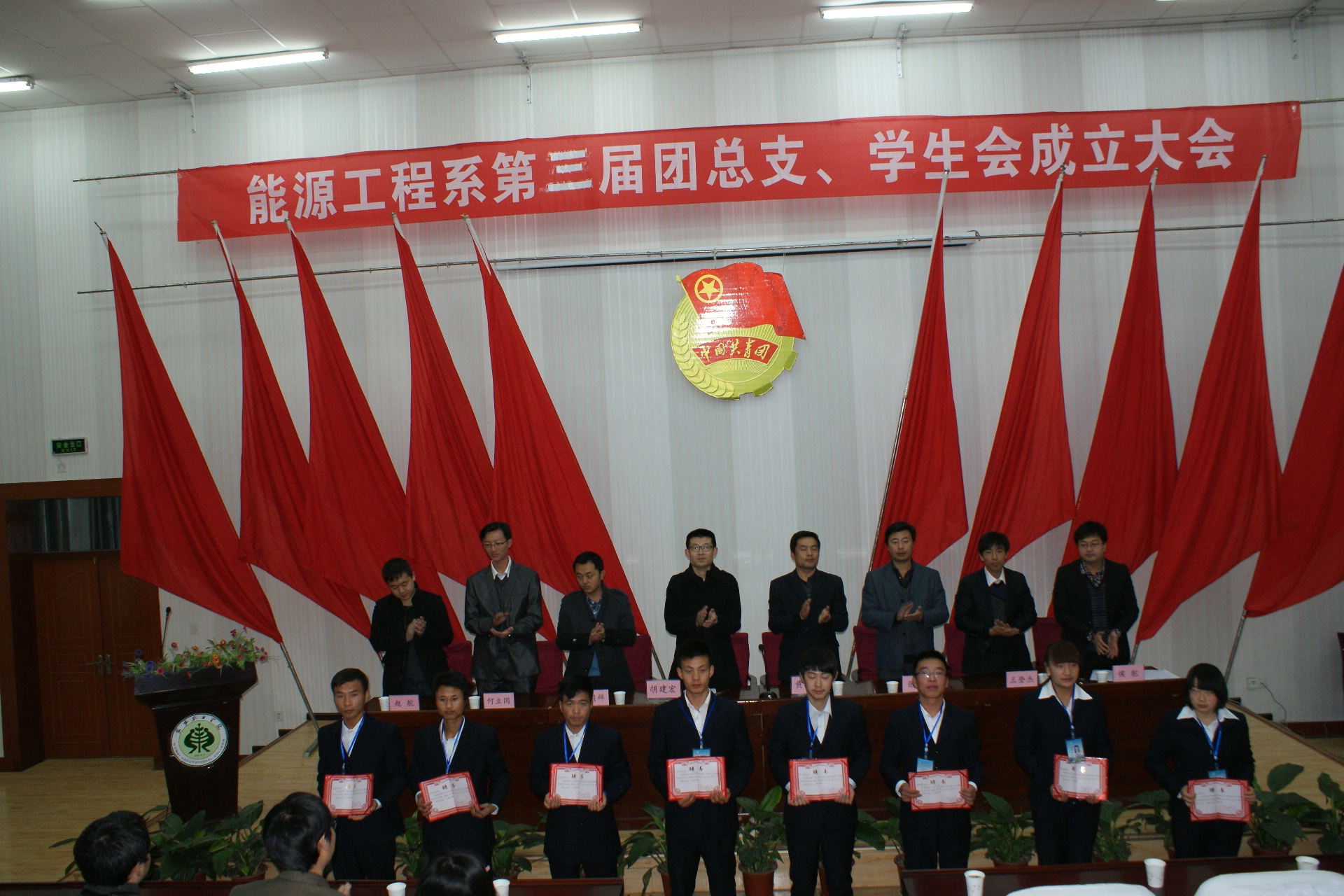 在政治輔導(dǎo)員侯舵宣布了能源工程系第二屆團(tuán)總支、學(xué)生會(huì)學(xué)生干部任命決定之后,參會(huì)領(lǐng)導(dǎo)與老師為新當(dāng)選學(xué)生干部頒發(fā)了聘書和工作證,侯老師希望大家能夠認(rèn)識(shí)到手中聘書所承載的責(zé)任和意義,能夠努力工作,再創(chuàng)輝煌。新任學(xué)生會(huì)主席葉鵬程對(duì)第三團(tuán)總支、學(xué)生會(huì)的工作做出了展望。