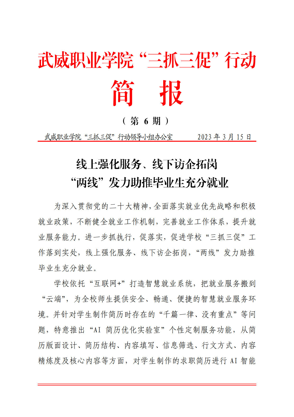 簡報第6期:線上強化服務、線下訪企拓崗,“兩線”發(fā)力助推畢業(yè)生充分就業(yè)
