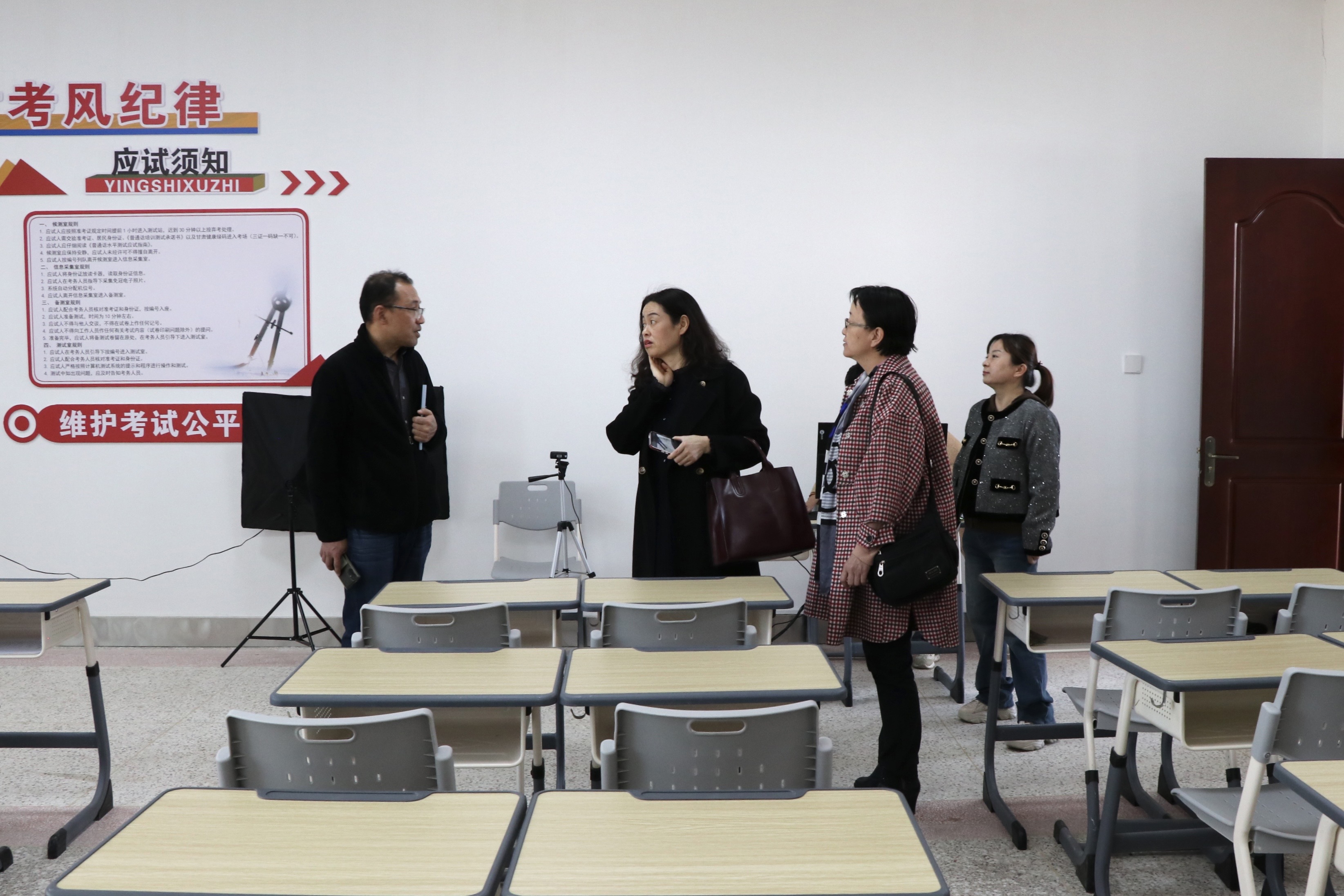 近日,甘肅省語言文字專家咨詢委員、蘭州理工大學(xué)教授魏琳一行三人對我校普通話測試新建機房進行了評估驗收。學(xué)校副校長田迎春及語委辦工作人員參加了驗收工作。