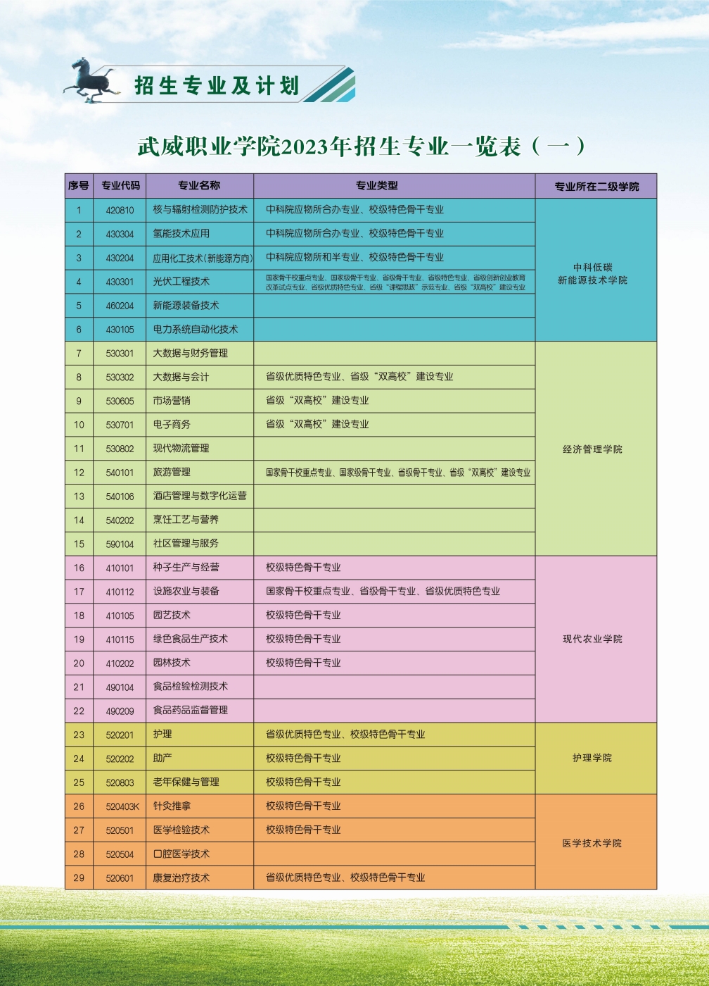 武威職業(yè)學(xué)院重點(diǎn)專業(yè)招生簡章