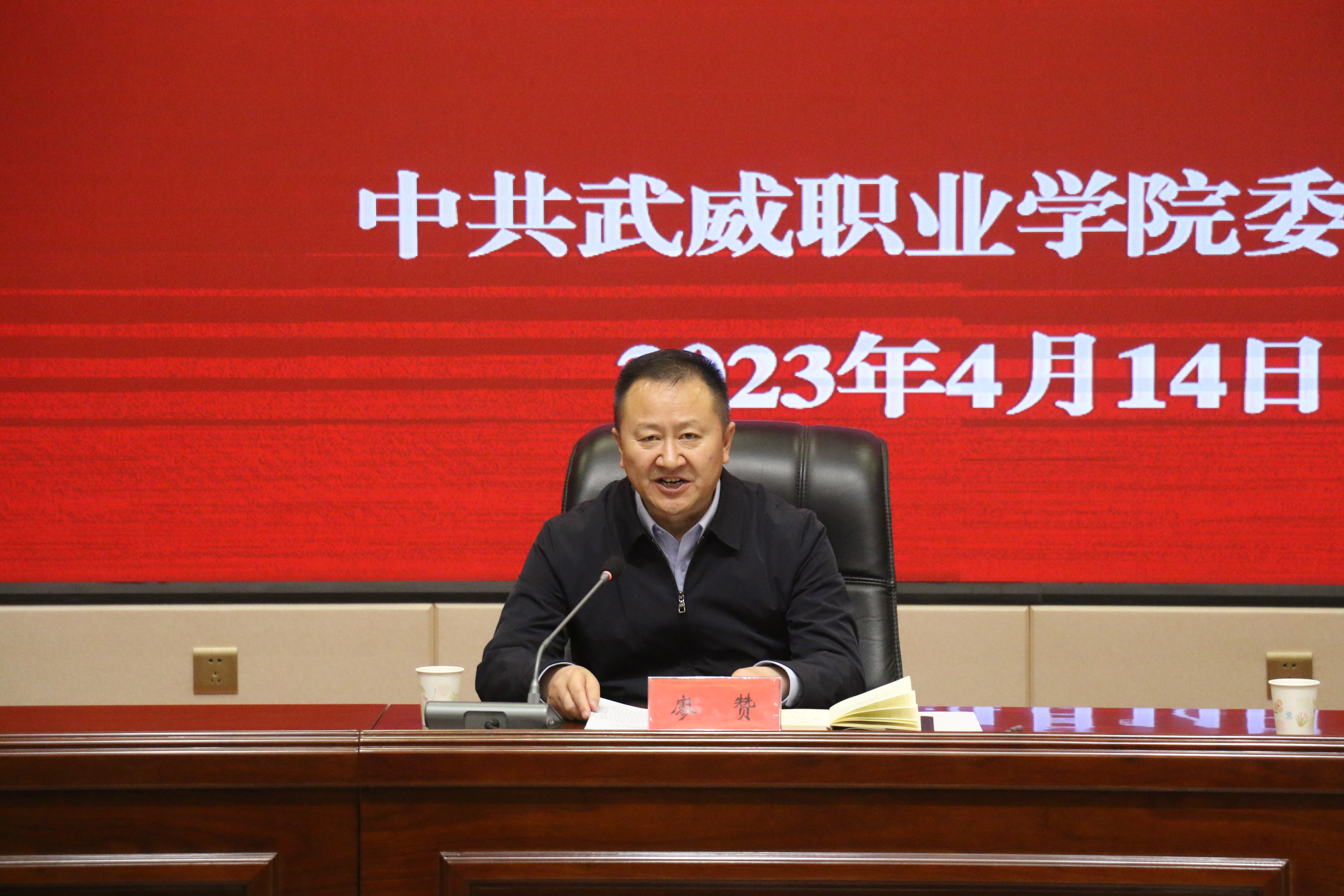 4月14日下午,學校召開學習貫徹習近平新時代中國特色社會主義思想主題教育動員部署會議。省委第十巡回指導組副組長、省景泰川電力提灌水資源利用中心黨委委員、副主任廖贊到會指導并講話。學校黨委書記、校長、主題教育領導小組組長趙明主持會議,傳達中央主題教育工作會議精神和省委主題教育動員部署會議精神并作動員講話。