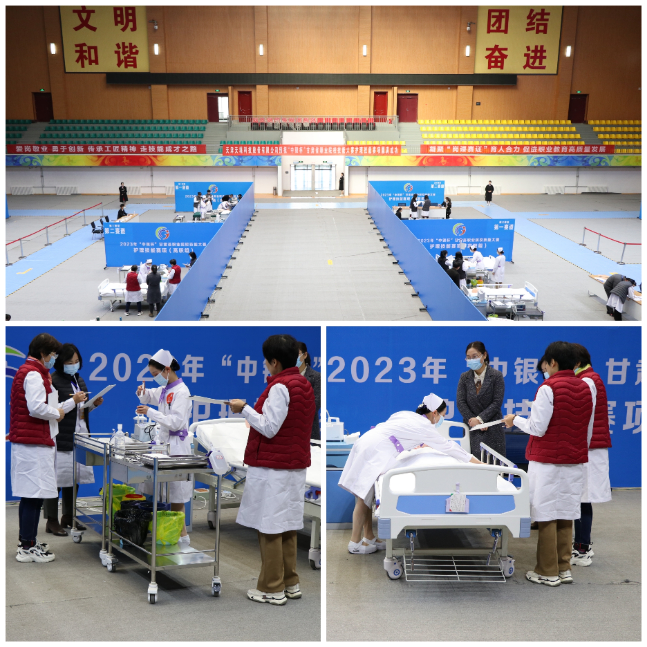 為全面貫徹落實省委辦公廳、省政府辦公廳《關(guān)于推動現(xiàn)代職業(yè)教育高質(zhì)量發(fā)展,加快“技能甘肅”建設的若干措施》,進一步推動打造“技能甘肅”工作,促進職業(yè)學校專業(yè)建設與教學改革,提高學生實踐動手能力和職業(yè)素養(yǎng),弘揚勞動光榮、技能寶貴、創(chuàng)造偉大的時代風尚,引領(lǐng)職業(yè)學校適應行業(yè)現(xiàn)狀及技術(shù)發(fā)展趨勢,檢驗教學成果,促進護理專業(yè)的教育教學改革。4月10日-4月12日,2023年“中銀杯”甘肅省職業(yè)院校技能大賽護理技能賽項在武威職業(yè)學院順利舉行。來自全省10所高職院校的25個團隊、50名學生和22名教師選手匯集武威職業(yè)學院賽場,共同譜寫護理人的工匠精神和大愛情懷。