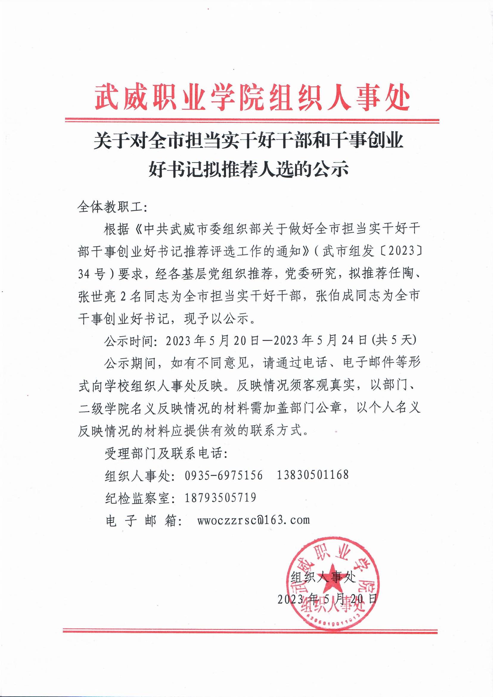 武威職業(yè)學(xué)院關(guān)于對第二批武威市領(lǐng)軍人才擬推薦人選的公示