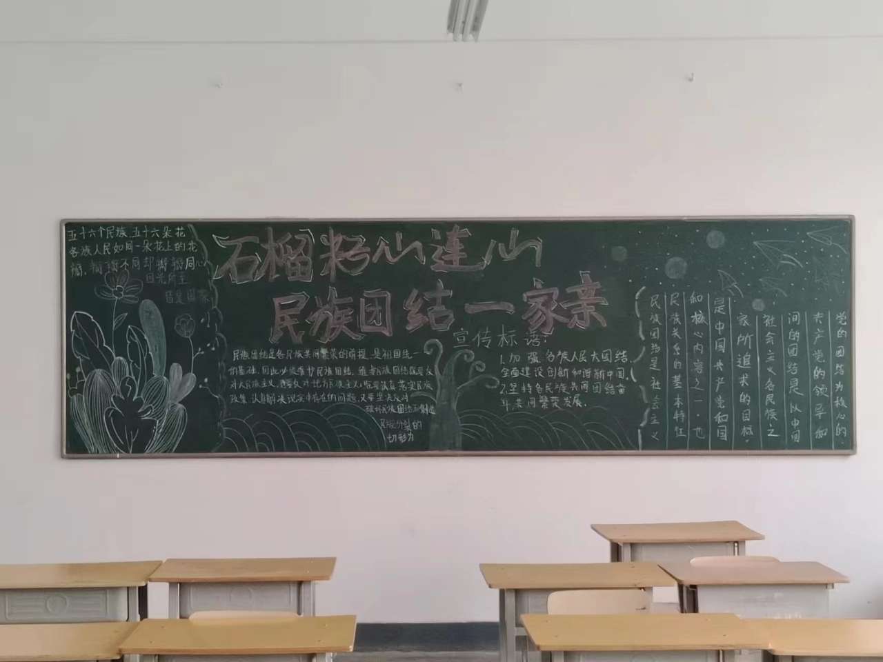 ? ? ? ?為深入開展民族團結進步創(chuàng)建活動,加強對學生的愛國主義教育和民族團結教育,武威職業(yè)學院藥學院緊緊圍繞“中華民族一家親” 這一主題,組織各班級開展了民族團結進步創(chuàng)建主題黑板報和各類形式的宣傳活動,激勵學生自覺維護全國各族人民大團結,從而進一步加強中華民族共同體意識。