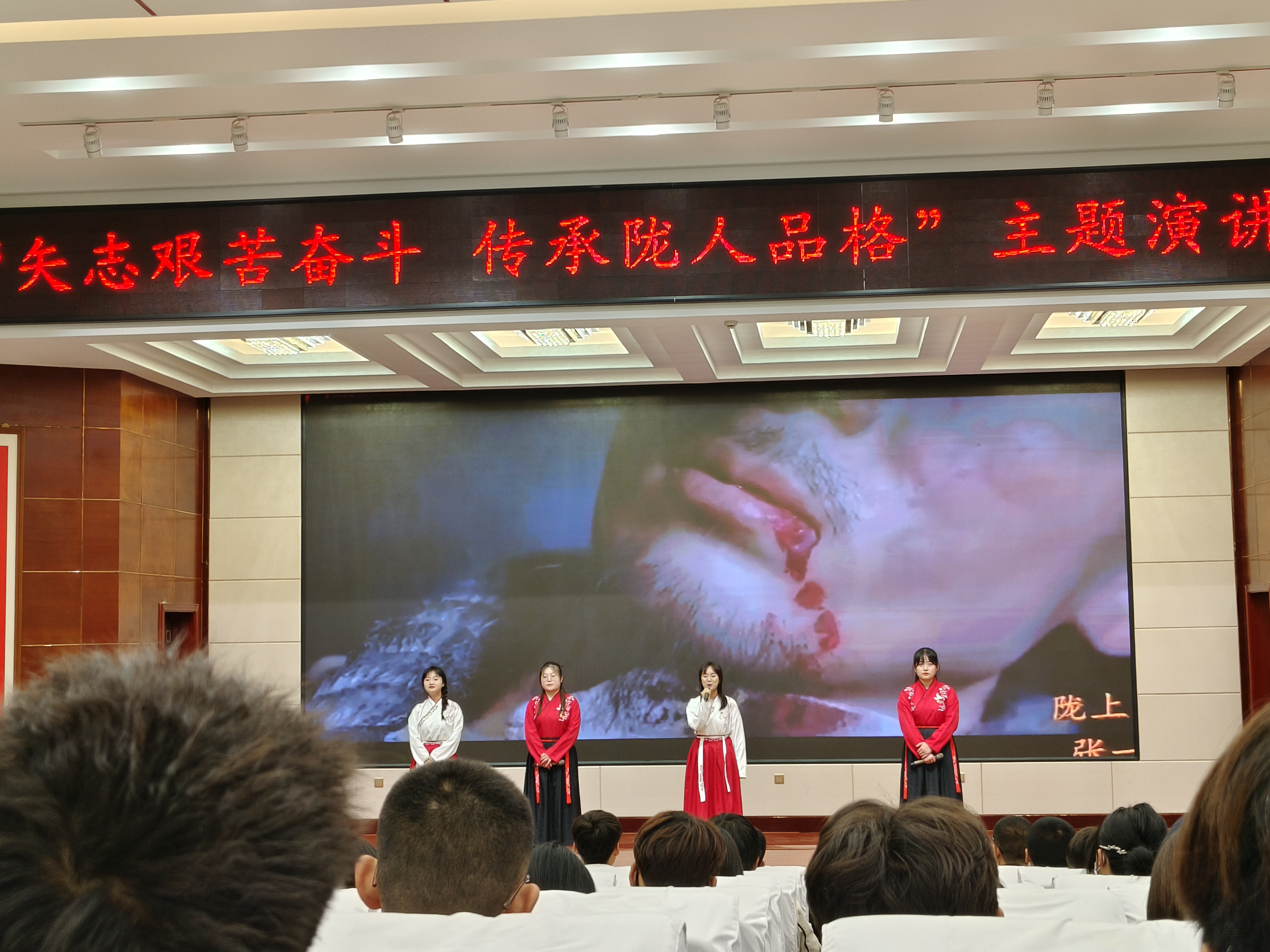 ? ? ? ?本次主題演講活動(dòng),不僅展示了同學(xué)們奮發(fā)向上的良好風(fēng)采,更激發(fā)了同學(xué)們愛黨愛國的熱情,發(fā)揮了良好的育人作用。我校將以“矢志艱苦奮斗 傳承隴人品格”青年主題文化活動(dòng)為契機(jī),以同學(xué)們喜聞樂見的活動(dòng)形式為載體,引導(dǎo)同學(xué)們傳承隴人品格,爭做新時(shí)代的好青年。