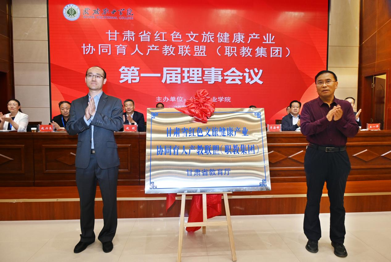 省教育廳職業(yè)教育與成人教育處二級調(diào)研員胡晶宣讀了《甘肅省紅色文旅健康產(chǎn)業(yè)協(xié)同育人產(chǎn)教聯(lián)盟(職教集團(tuán))的批復(fù)》,并與武威市教育局副局長李海峰共同為《甘肅省紅色文旅健康產(chǎn)業(yè)協(xié)同育人產(chǎn)教聯(lián)盟(職教集團(tuán))》揭牌。