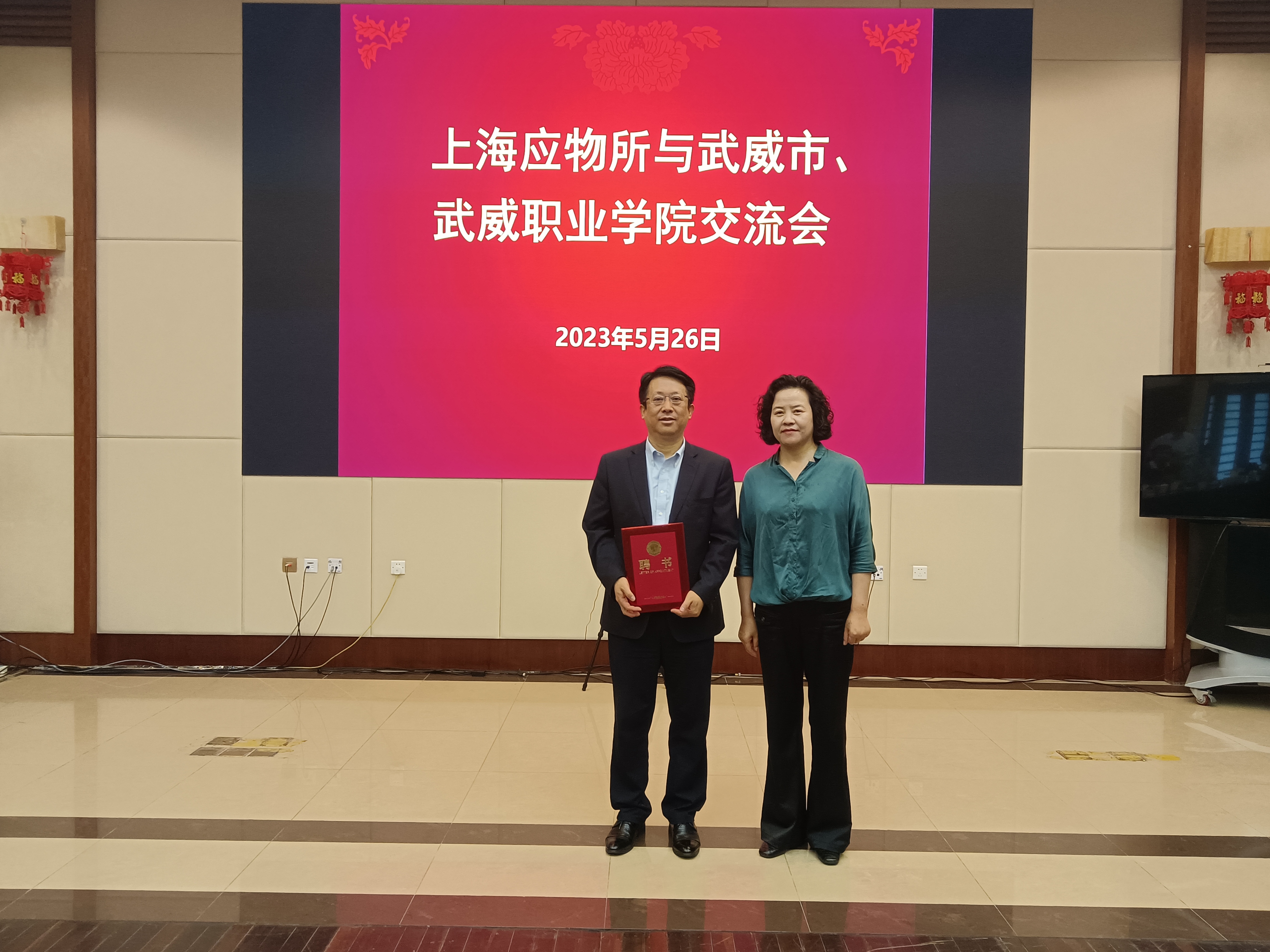 座談會(huì)上,柳生墜為武威職業(yè)學(xué)院特聘專家中國(guó)石油化工股份有限公司上海石油化工研究院楊為民院士頒發(fā)聘書。