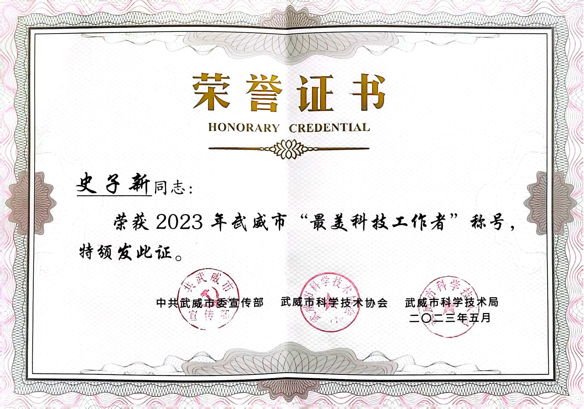 我校教師榮獲武威市“最美科技工作者”稱號