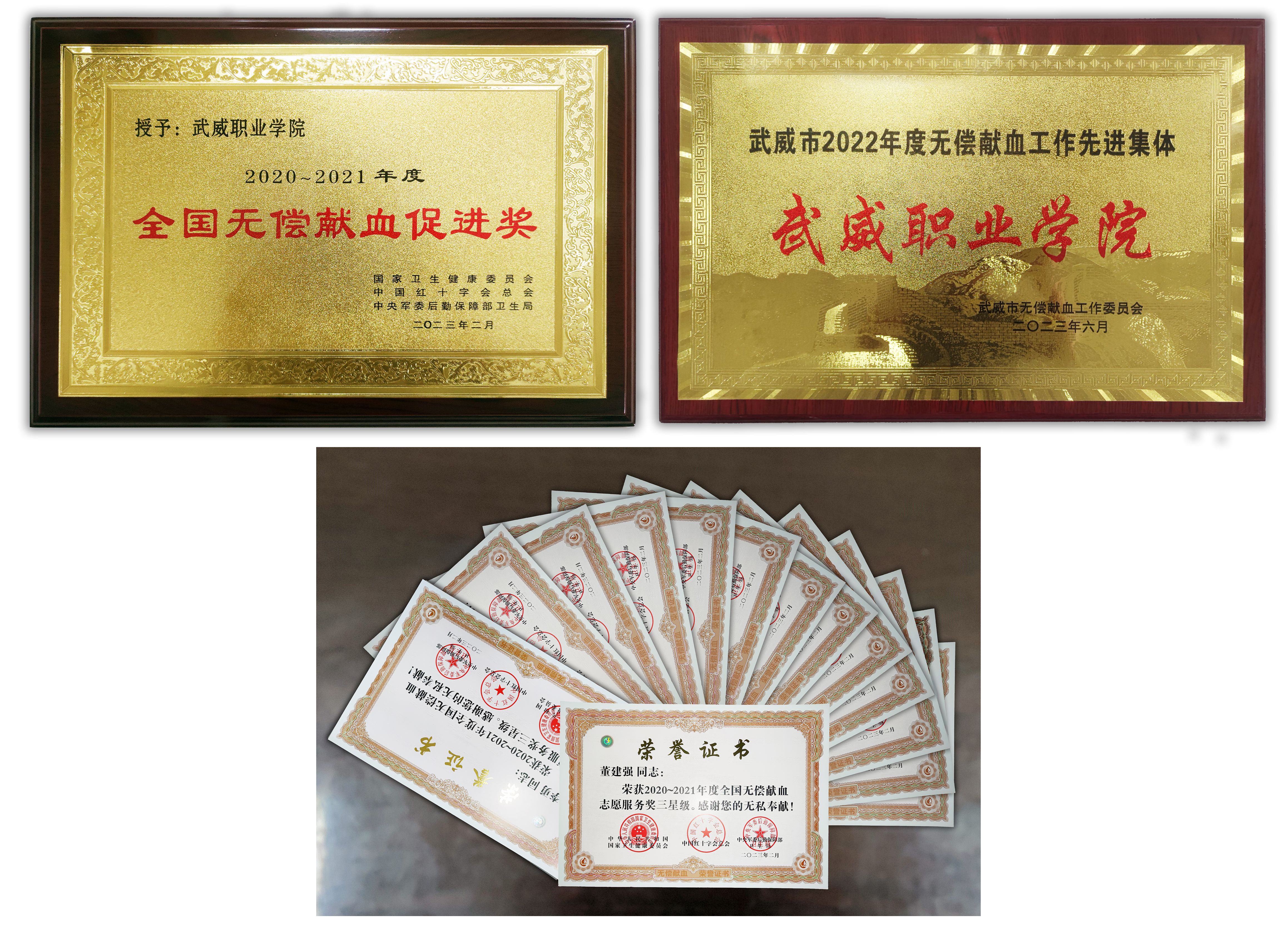學(xué)校繼2020年獲得“2018-2019年度全國無償獻(xiàn)血促進(jìn)獎”后,再次榮獲“2020-2021年度全國無償獻(xiàn)血促進(jìn)獎”,14名師生榮獲全國無償獻(xiàn)血志愿服務(wù)獎。我校護(hù)理學(xué)院被評為武威市2022年度無償獻(xiàn)血工作先進(jìn)集體,1名教師被評為先進(jìn)個人。