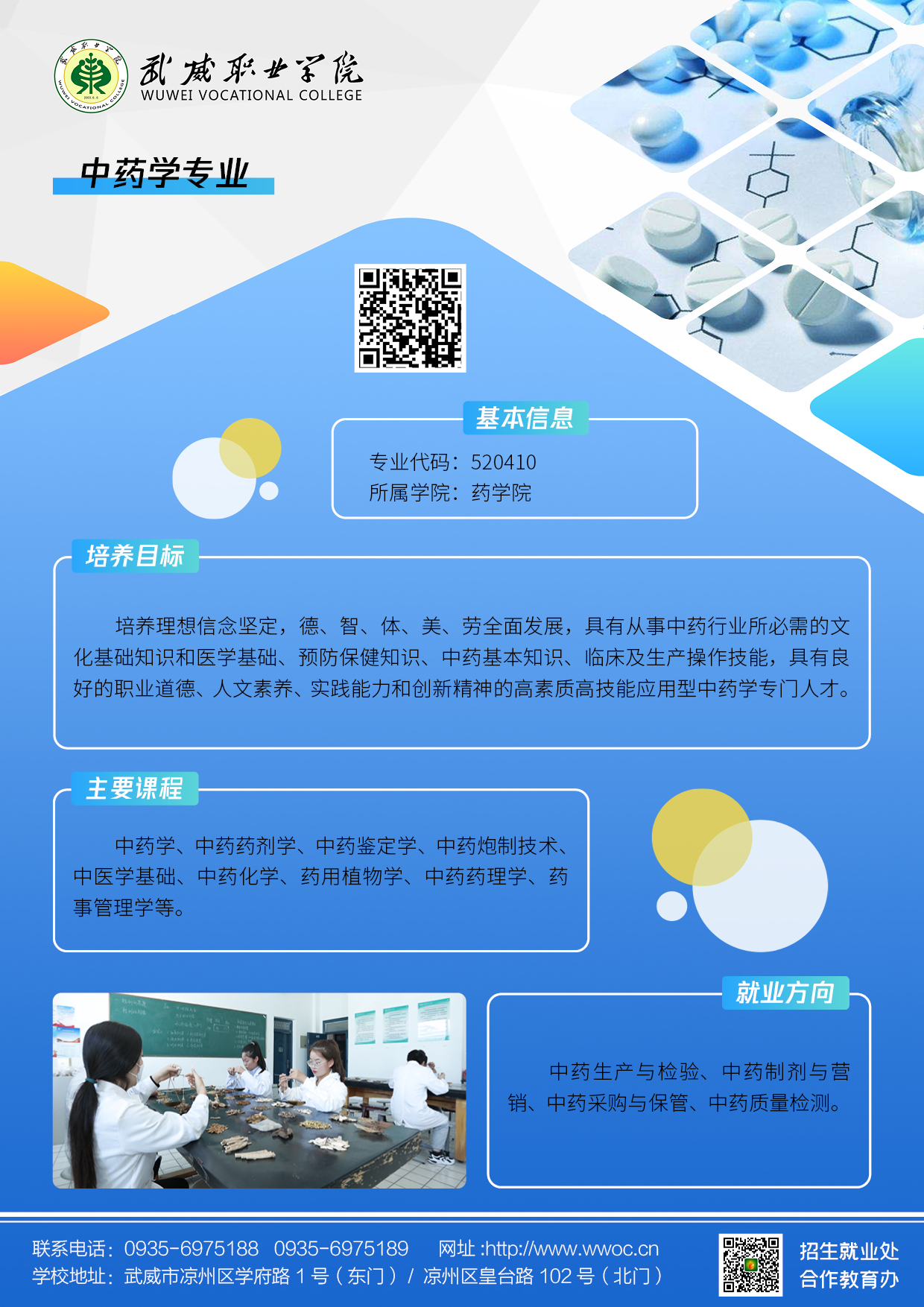 武威職業(yè)學(xué)院二級學(xué)院專業(yè)簡介丨藥學(xué)院